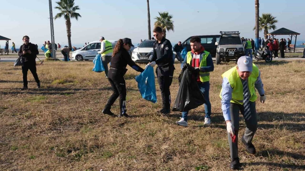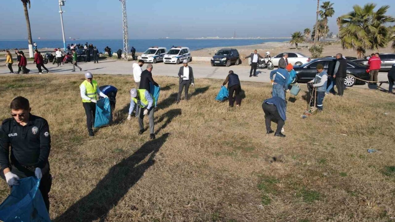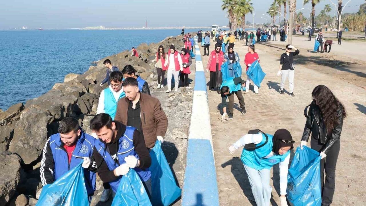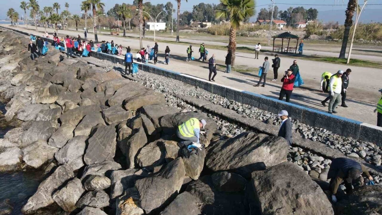 Hatay’ın Dörtyol ilçesinde Belediye ve Nazmiye Muratlı Gençlik Merkezi gönüllü gençlerinin iş birliğiyle düzenlenen ’Temiz Bir Dörtyol İçin El Ele’ etkinliğinde, sahilde temizlik yapıldı.