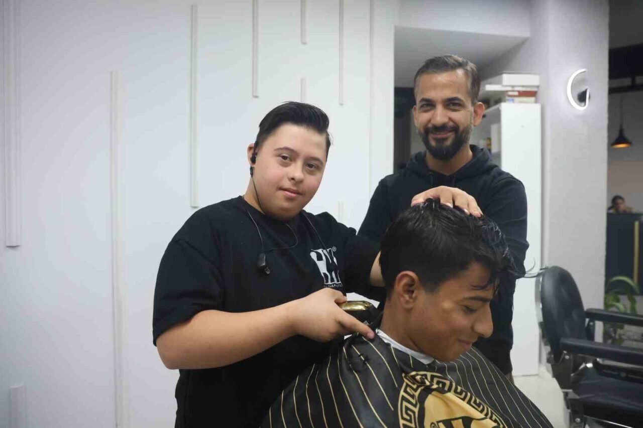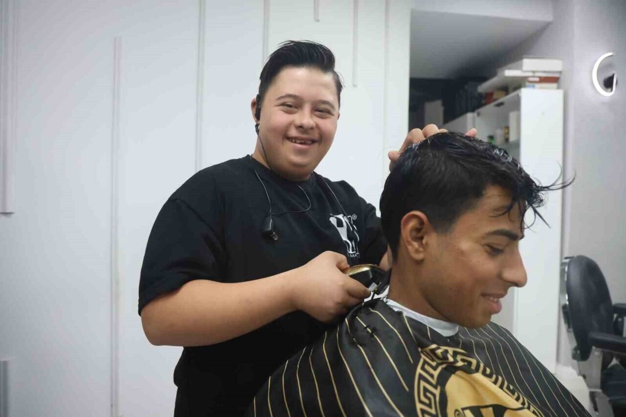 Antakya ilçesi Ekinci Mahallesi’nde yaşayan 16 yaşındaki Down sendromlu Şükrü Dağlı, 2025 yılı Nisan ayından itibaren kuaför Cuma Karaahmetli’nin iş yerinde çıraklık yapmaya başladı. Zaman geçirmek ve yeni arkadaşlıklar edinmek için kuaför salonunda vakit geçiren Dağlı, kısa sürede kendini geliştirerek çırak olma başarısı elde etti. Yeteneği ve müşterilerin kendisine olan sevgisiyle Dağlı, şahsına ait berber koltuğunda vatandaşlara hizmet ediyor. Profesyonel berber olma hayaliyle mesai yapan Dağlı, müşteriler tarafından da kuaför salonunun en sevilen ismi olmuş durumda. Öğrenmeye açık ve girişken olan Şükrü’nün berber mesleğinde kendisini geliştireceğini ifade eden esnaf Karaahmetli, zamanla profesyonel saç kesme yolunda ilerlediğini söyledi.