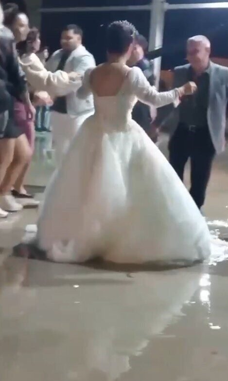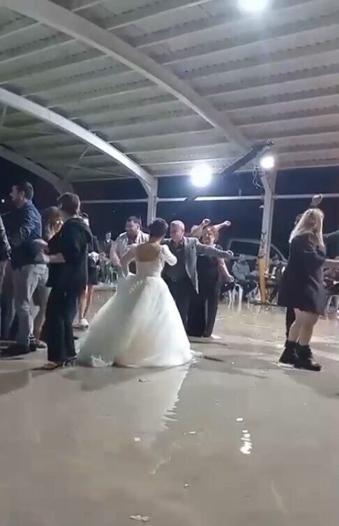 Düğünü su basınca, paçalarını sıvayıp oynamaya devam ettiler