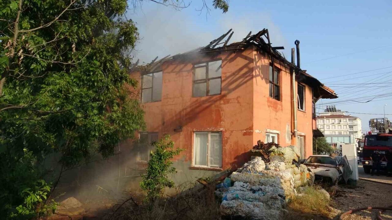Antalya’da 2 katlı müstakil evin üst katı çıkan yangında küle