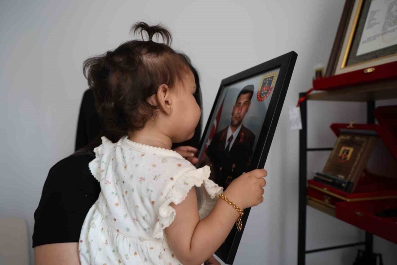 Henüz konuşmaya yeni başlayan Nare Lina’nın babasının fotoğrafına “baba” diyerek sarılması ise duygu dolu anlar yaşatıyor. Minik Nare’nin babasının fotoğraflarıyla kurduğu derin bağ, şehidin geride bıraktığı en kıymetli miras olarak objektife yansıdı.