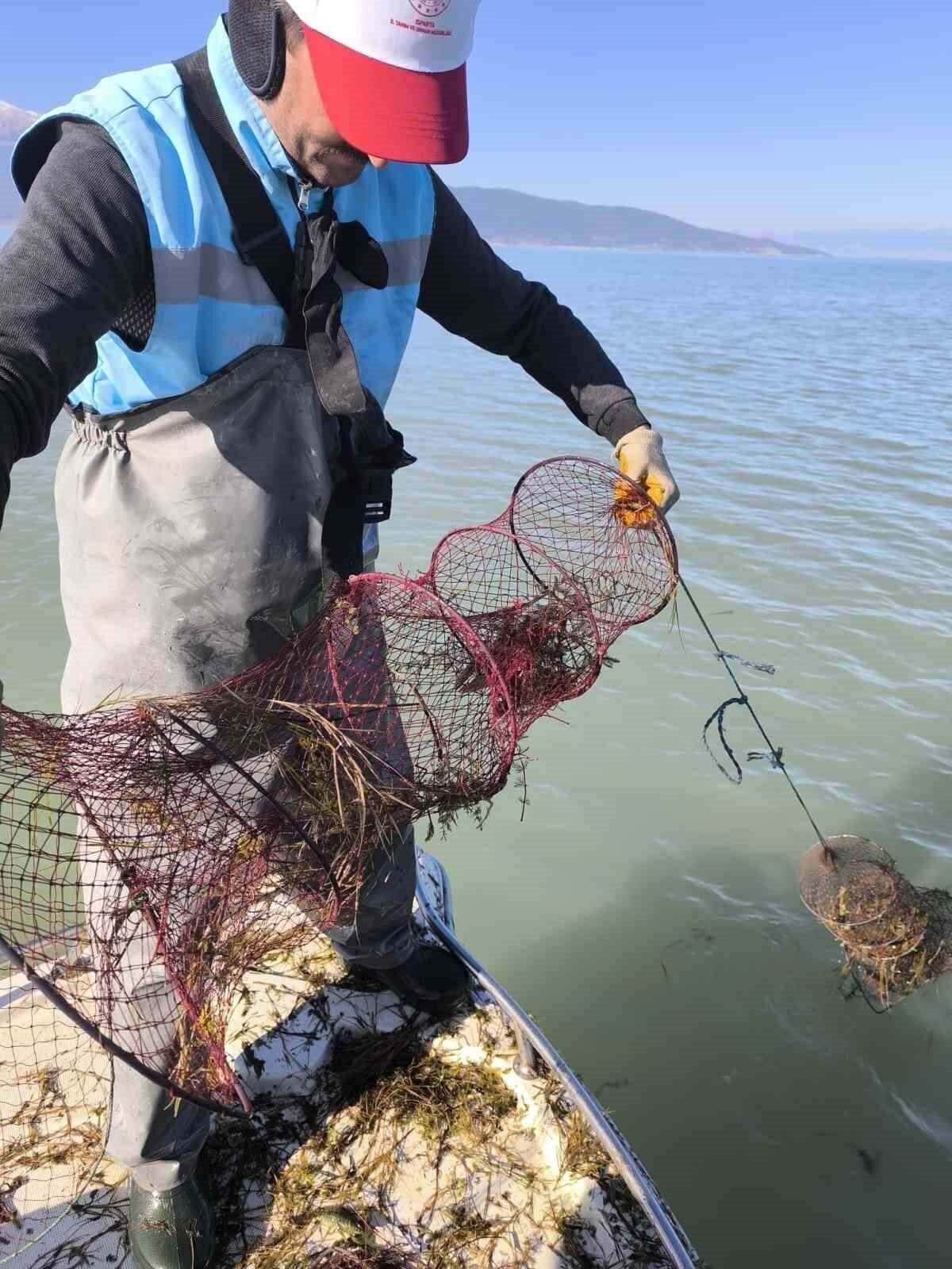 Eğirdir Gölü’nde yapılan denetimlerde, kerevitlerin üreme dönemine denk gelen av yasağına rağmen, 600 adet kaçak kerevit sepeti ele geçirildi. Sepetlerden çıkan yaklaşık 200 kilogram canlı kerevit, Su Ürünleri Kontrol Ekipleri tarafından yeniden doğal ortamlarına salındı.