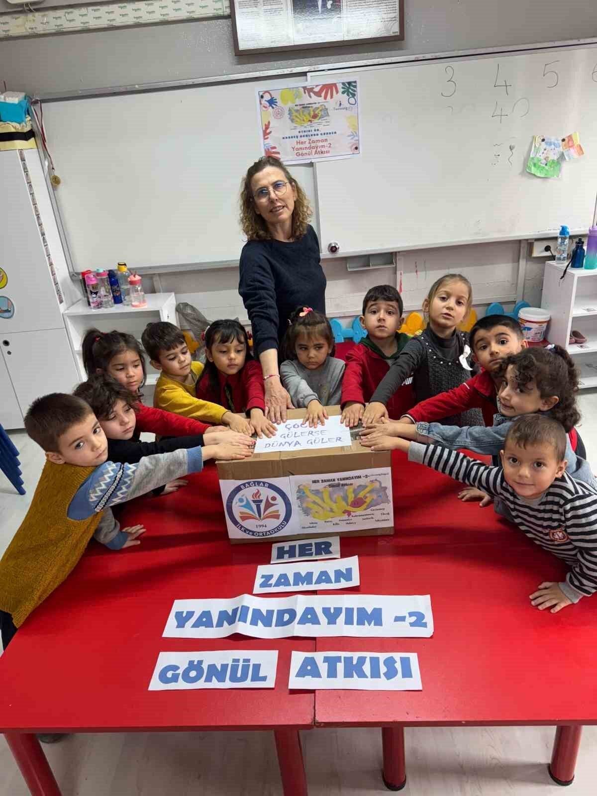Bağlar İlköğretim Okulu Anaokulu Çalışkan Arılar Sınıfı öğrencileri, öğretmenleri Seher Şahin rehberliğinde yoğurt kovalarında el emeğiyle atkılar ördü. Hazırlanan atkılar ve çeşitli hediyeler, Malatya Yeşilyurt Zübeyde Hanım Anaokulu’ndaki çocuklara gönderildi. Anaokulu öğretmeni Seher Şahin, projeyle ilgili olarak, “‘Çocuklar gülerse, dünya güler’ dedik ve 15 öğrencimizle birlikte heyecanla atkılarımızı ördük. Malatya’daki minik arkadaşlarımıza gönülden bir hediye göndermek istedik” dedi.