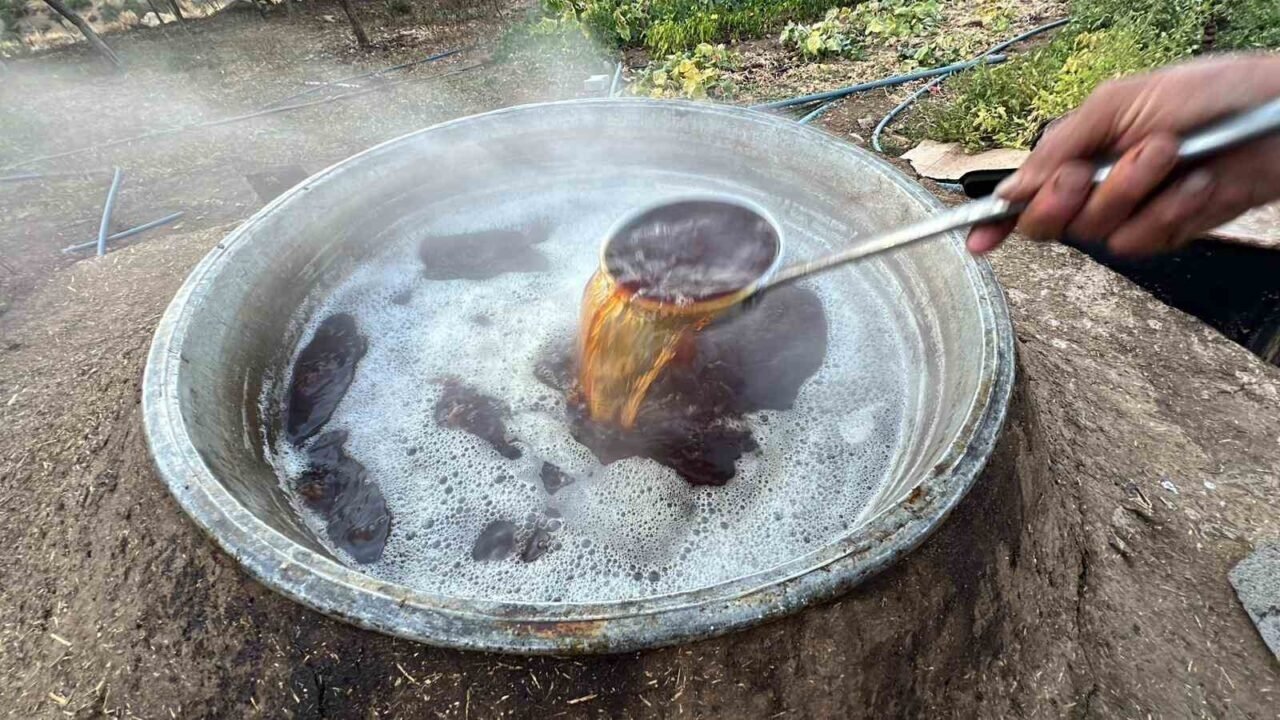 Kahramanmaraş’ın Ekinözü ilçesinde bağ bozumunun tamamlanmasıyla birlikte köylülerde üzüm pekmezi telaşı başladı. Bölgenin meşhur Maraş Kabarcık üzümünden yapılan pekmez, eski usul yöntemlerle köylülerin sofralarına hazırlanıyor.