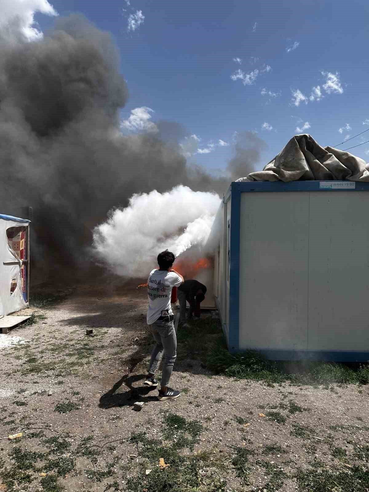 Kahramanmaraş’ın Elbistan ilçesindeki konteyner kentte çıkan yangın ekiplerin müdahalesiyle söndürüldü.