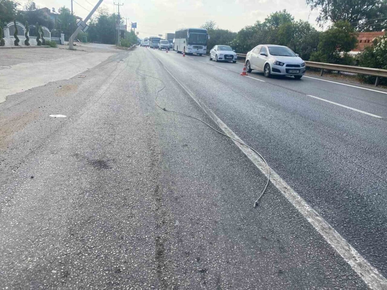 Olay, D400 kara yolu üzerinde meydana geldi. Yol kenarında bulunan beton elektrik direğinin devrilmek üzere olduğunu gören vatandaşlar polis ekiplerine haber verdi. Olay yerine gelen ekipler, yaptığı inceleme sonucunda yere düşen elektrik kablosu ile direğin devrilmesine karşı yolda güvenlik önlemi aldı. Olaya karışan aracı ve sürücüyü bulmak için çalışma başlattı.