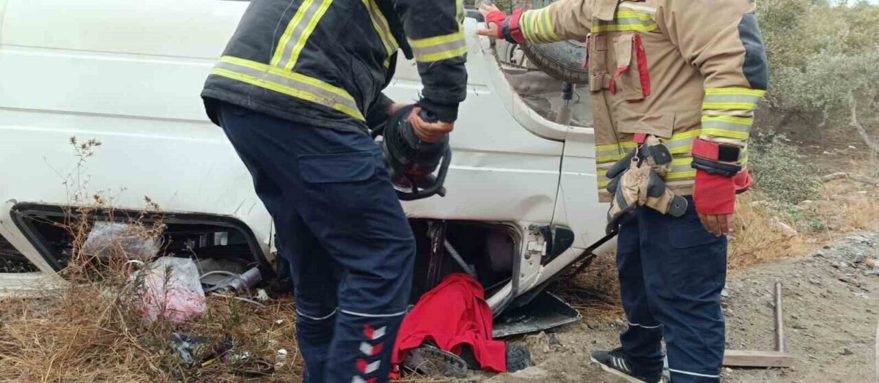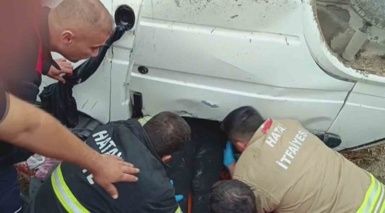 Hatay’da elektrik direğine çarpıp ters dönen minibüste sıkışan şoför ve yaralı şahıs itfaiye ekipleri tarafından kurtarıldı.