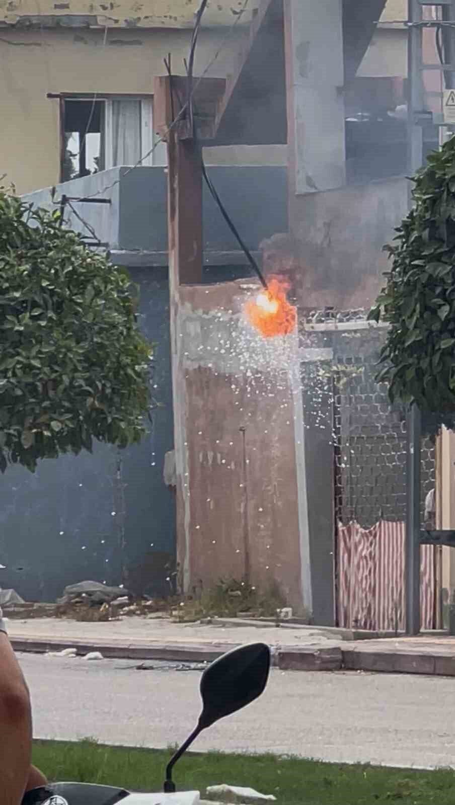 Olay, İskenderun’a bağlı Mustafa Kemal Mahallesi Eyüpsultan Caddesi’nde meydana geldi. Hava sıcaklığının 40 derecenin üzerine çıkmasıyla birlikte klima ve elektrikli cihaz kullanımının artması, elektrik tellerinde genleşmeye yol açtı. Tellerde arka arkaya patlamalar meydana gelen patlamalar havai fişeği andırırken, etrafa saçılan kıvılcımlar çevrede kısa süreli paniğe neden oldu. İhbar üzerine bölgeye gelen ekipler güvenlik önlemi aldı.