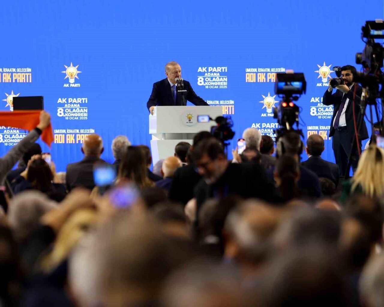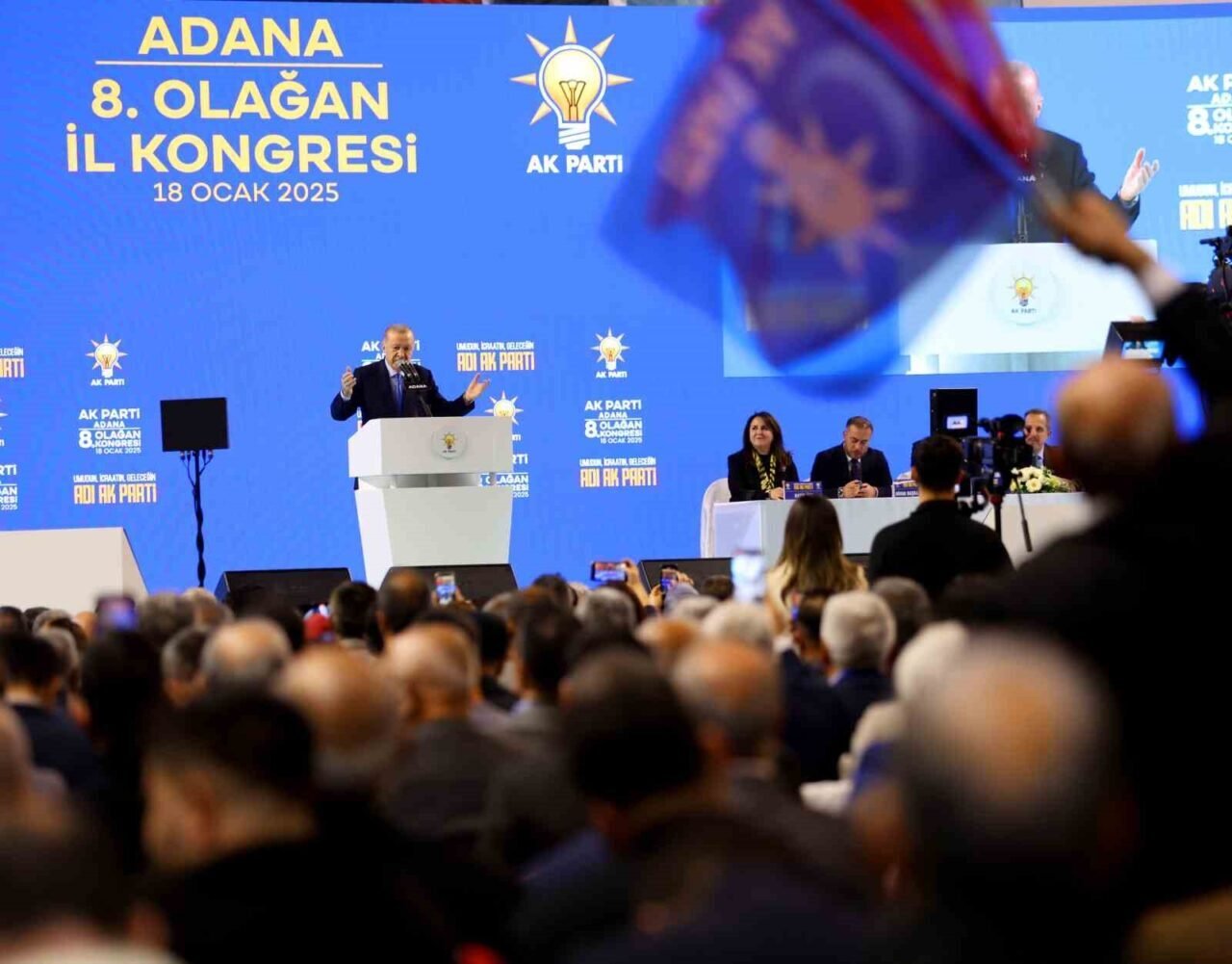 Burada düzenlenen kongrede konuşan Erdoğan, muhalefetin tuzaklarına düşmeyeceklerini ifade ederek, “Adana’yı ve Adanalı kardeşlerimi, bu şehre meftun olan şairlerin diliyle bir kez daha sevgi ve saygıyla selamlıyorum. Allah’ına kurban Adana. Bizleri canlı bağlantı ile takip eden Amasya, Sinop ve Tokat’taki kardeşlerime de selam gönderiyorum. Bu coğrafyadaki Yemen ağıtları, Sarıkamış ağıtları her biri millet olarak yüreğimizi dağlayan Avşar ağıtları Adana’nın ne kadar önemli ruh derinliğine sahip olduğunun kanıtıdır. Biz Adana’yı bazıları gibi sıcaktan, kebaptan, portakal ve şalgamdan ibaret görmüyoruz. Adana, şehitler yurdudur. Söylediğini doğrudan söyleyen civan mert insanlar memleketidir. Adanalı, Allah’ın adamıdır. Adana’nın ırmakları, Göksu, Seyhan ve Ceyhan kökünü Türkistan’dan alan sadece Çukurova’yı değil, gönüllerimizi sulayandır. Adana, yalnızca coğrafyadan ibaret değildir. Bulunduğumuz her makam unutmayınız milletimizin bir emanetidir. Bu görevler bize ülkeye ve millete hizmet etmek için verilmiştir. Bizim büyük hedeflerimiz var. Bunun için gerekirse benliğimizi, nefsimizi ayaklar altına alacağız. Gerekirse gecemizi, gündüzümüze katacağız, muhalefetin bizi çekmeye çalıştığı tuzaklara düşmeyeceğiz. İş üretmeye, hizmet üretmeye devam edeceğiz” diye konuştu.