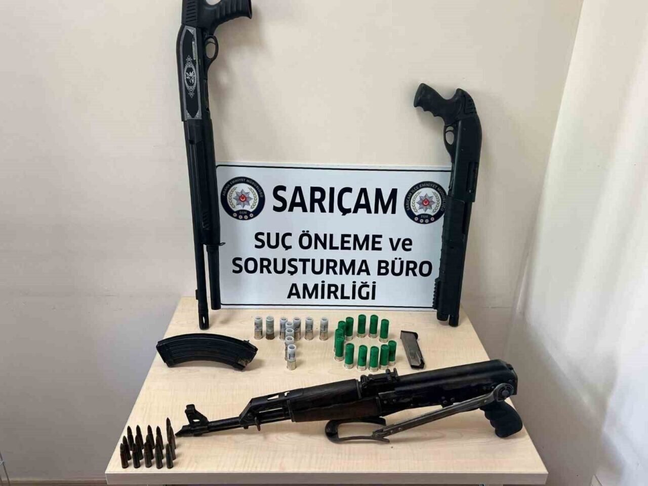 ADANA’NIN SARIÇAM İLÇESİNDE BİR ŞAHSIN EVİNE YAPILAN OPERASYONDA, ZEMİNİN ALTINA GİZLENMİŞ AK-47 OTOMATİK TÜFEK VE RUHSATSIZ POMPALI TÜFEKLER ELE GEÇİRİLDİ.