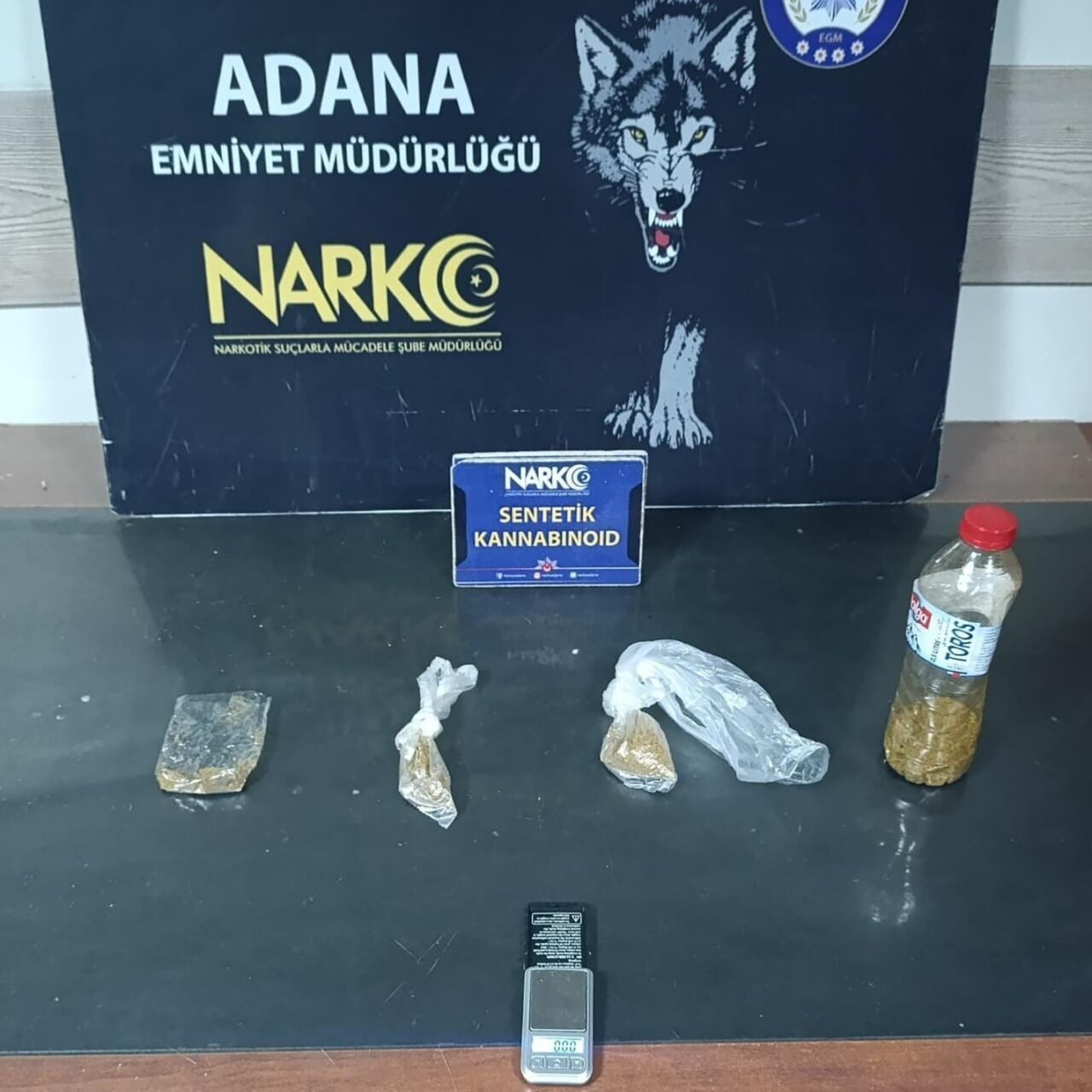 Adana Emniyet Müdürlüğü Narkotik Suçlarla Mücadele Şube Müdürlüğü ekipleri, Alper S.’nin uyuşturucu ticareti yaptığını belirledi. Bunun üzerine söz konusu şüphelinin Seyhan ilçesine bağlı Mıdık Mahallesi’ndeki evine operasyon yapıldı. Evde yapılan arama çalışmalarında 4 pakette toplam 38.57 gram satışa hazır halde bonzai ve hassas terazi ele geçirildi.