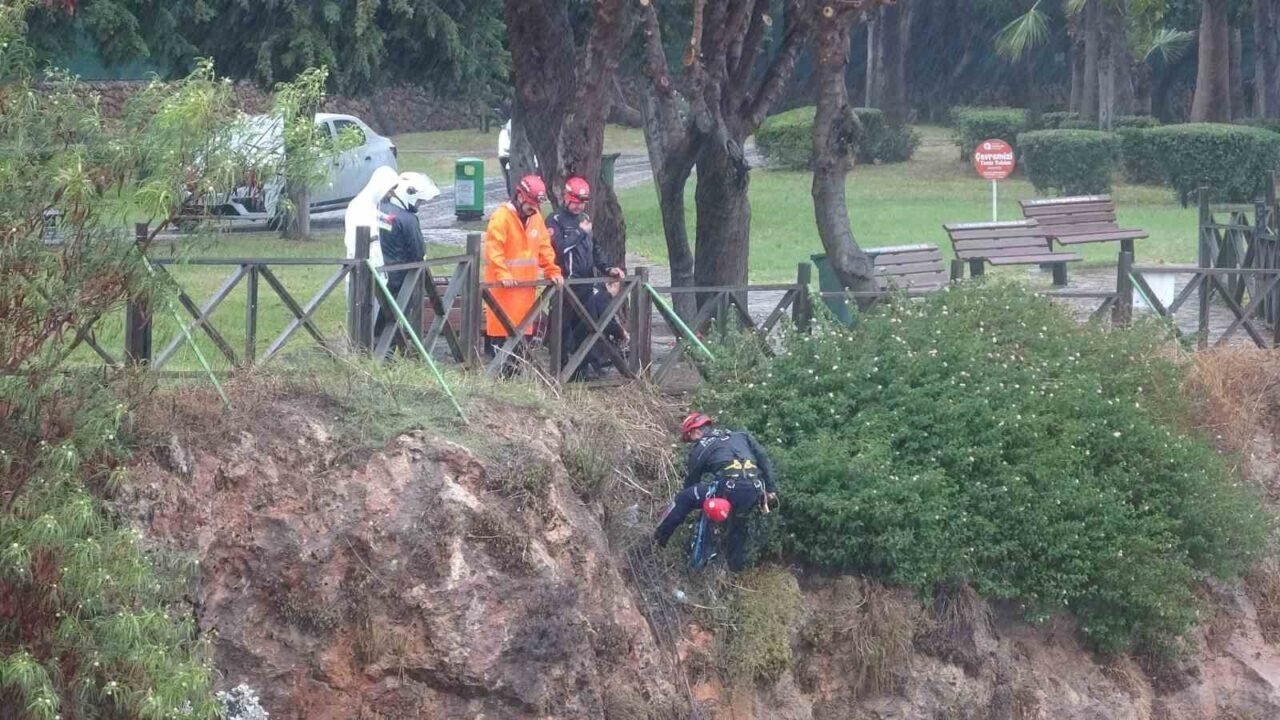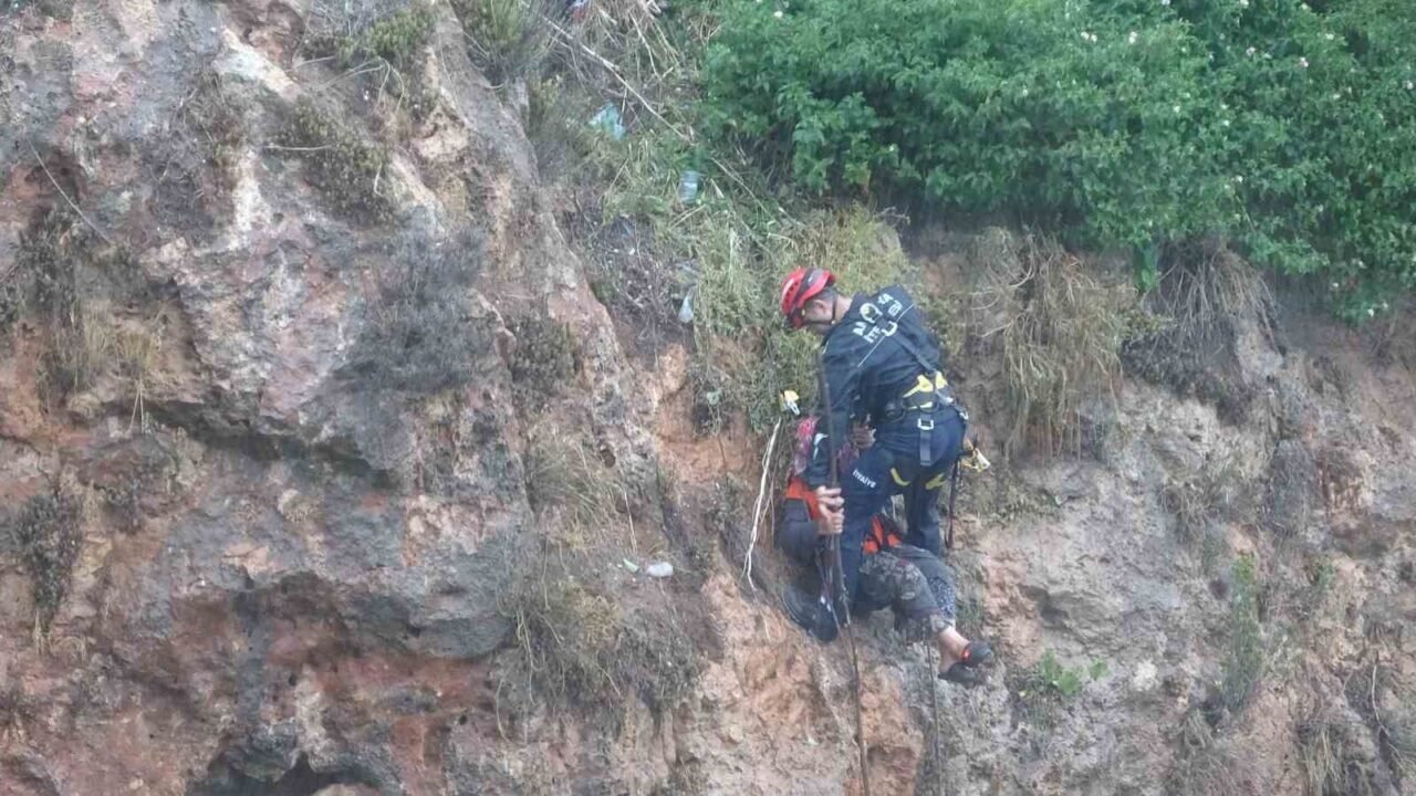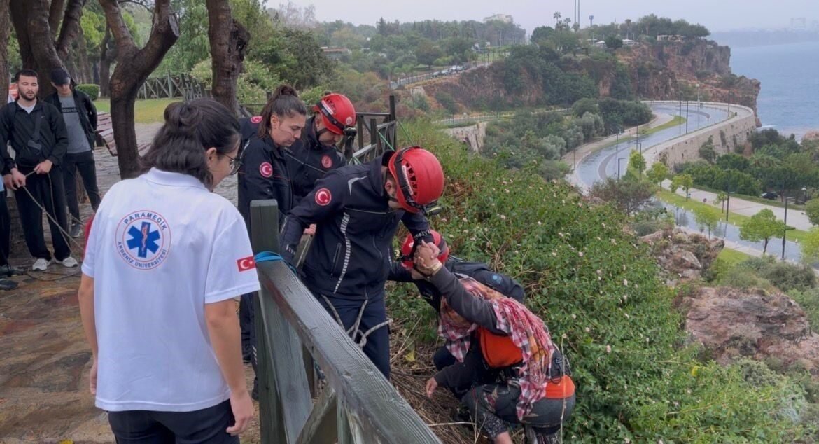 ANTALYA’DA YAĞMUR ALTINDA FALEZLERDE YAKLAŞIK 20 METRE YÜKSEKLİKTE MAHSUR KALAN KADIN, ÇOCUKLARIN YARDIMIYLA İTFAİYEYE HABER VERİLMESİNİN ARDINDAN, İTFAİYE ERLERİ VE VATANDAŞLARIN ORTAK ÇABASIYLA HALAT YARDIMIYLA YUKARI ÇEKİLEREK KURTARILDI. KURTARILDIĞI ANDA SAKİNLİĞİNİ KORUYAN KADININ YÜZÜNDE TEBESSÜM DİKKAT ÇEKTİ.