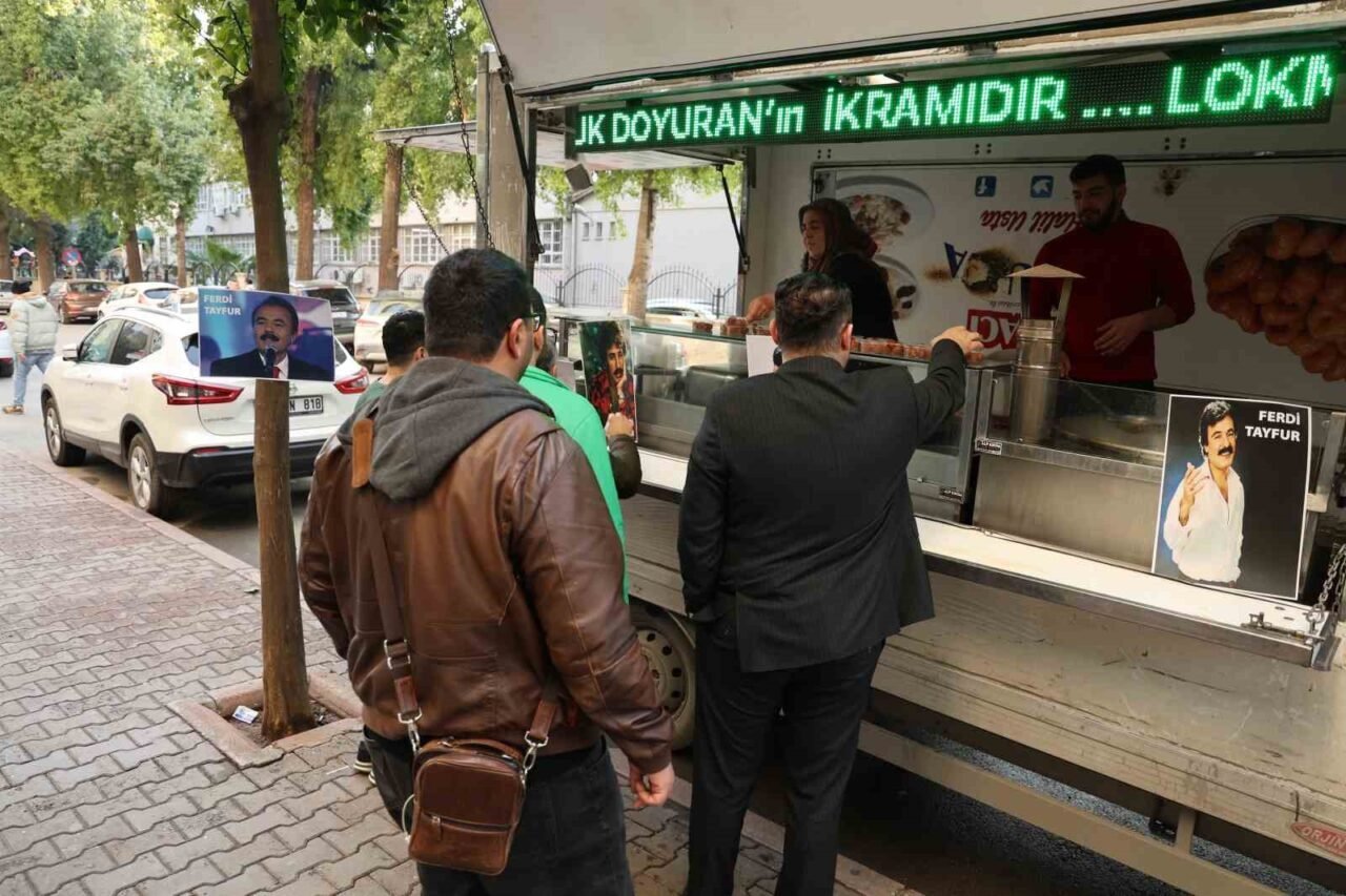 Adana’da Ferdi Tayfur hayranı tekstilci Ufuk Doyuran ise merkez Seyhan ilçesi Reşatbey Mahallesi’ndeki mağazasının önünde 5 bin kişiye lokma tatlısı dağıttı. Ferdi Tayfur’un fotoğraflarının yer aldığı dövizler tatlı tezgahına asılırken mağazadan da Ferdi Tayfur’un müzikleri çalındı.