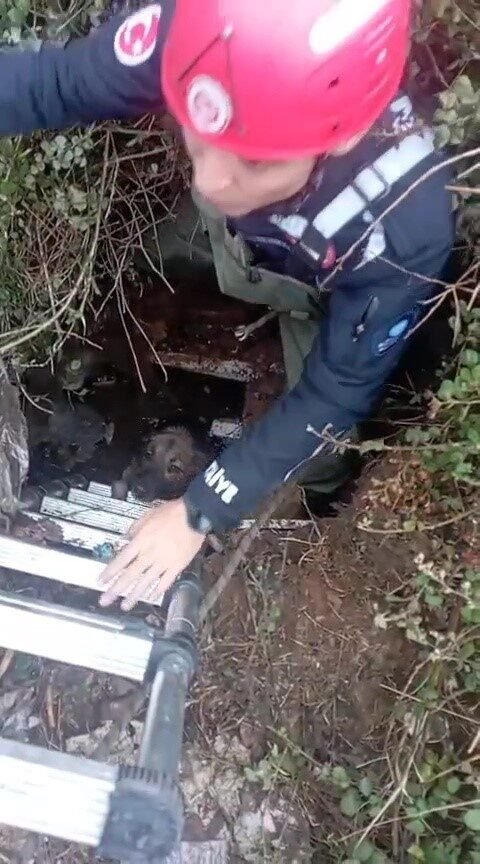 Foseptik çukuruna düşen köpeği itfaiye kurtardı