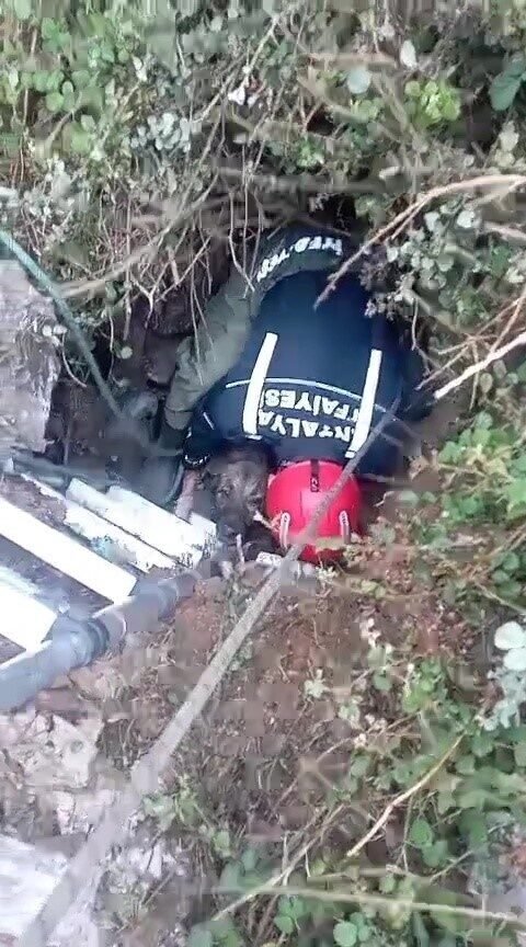 Antalya’da foseptik çukuruna düşen köpek itfaiye ekiplerince kurtarıldı.