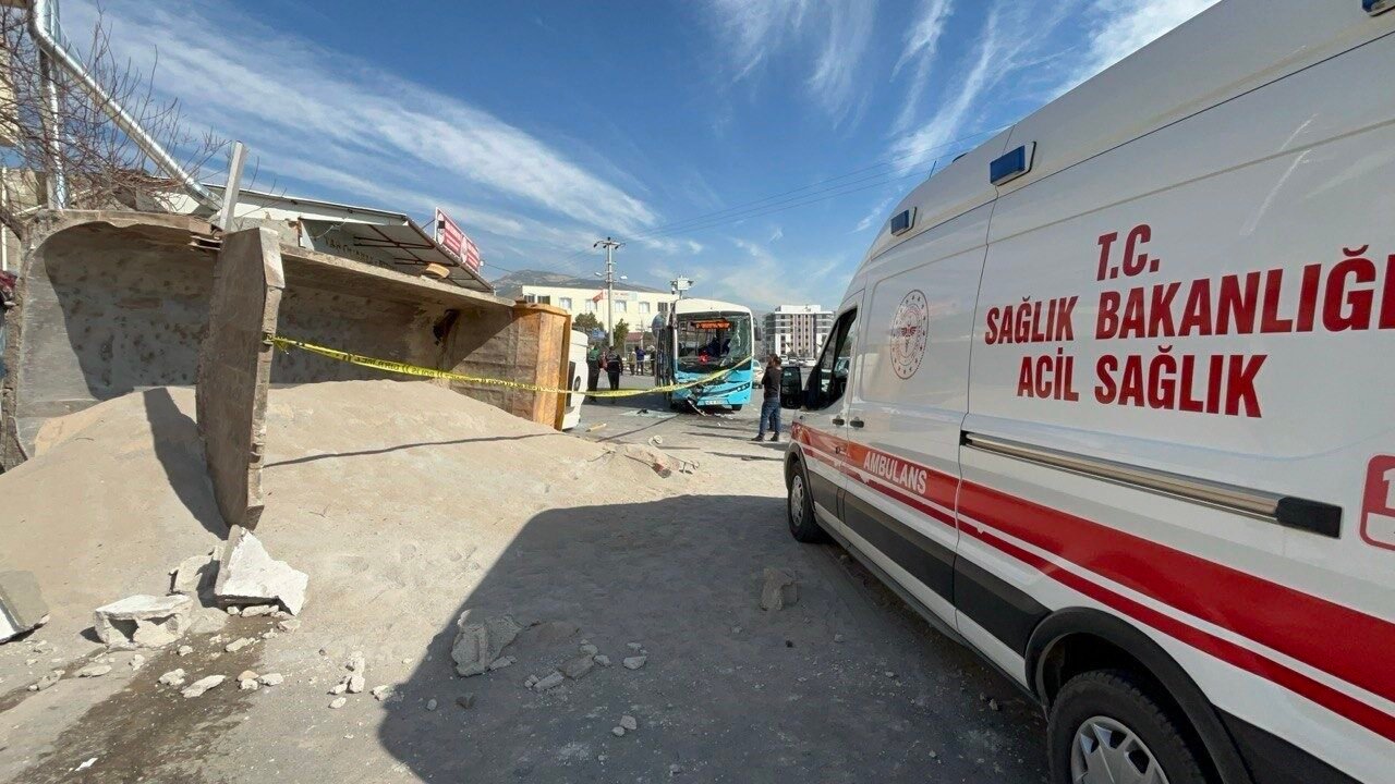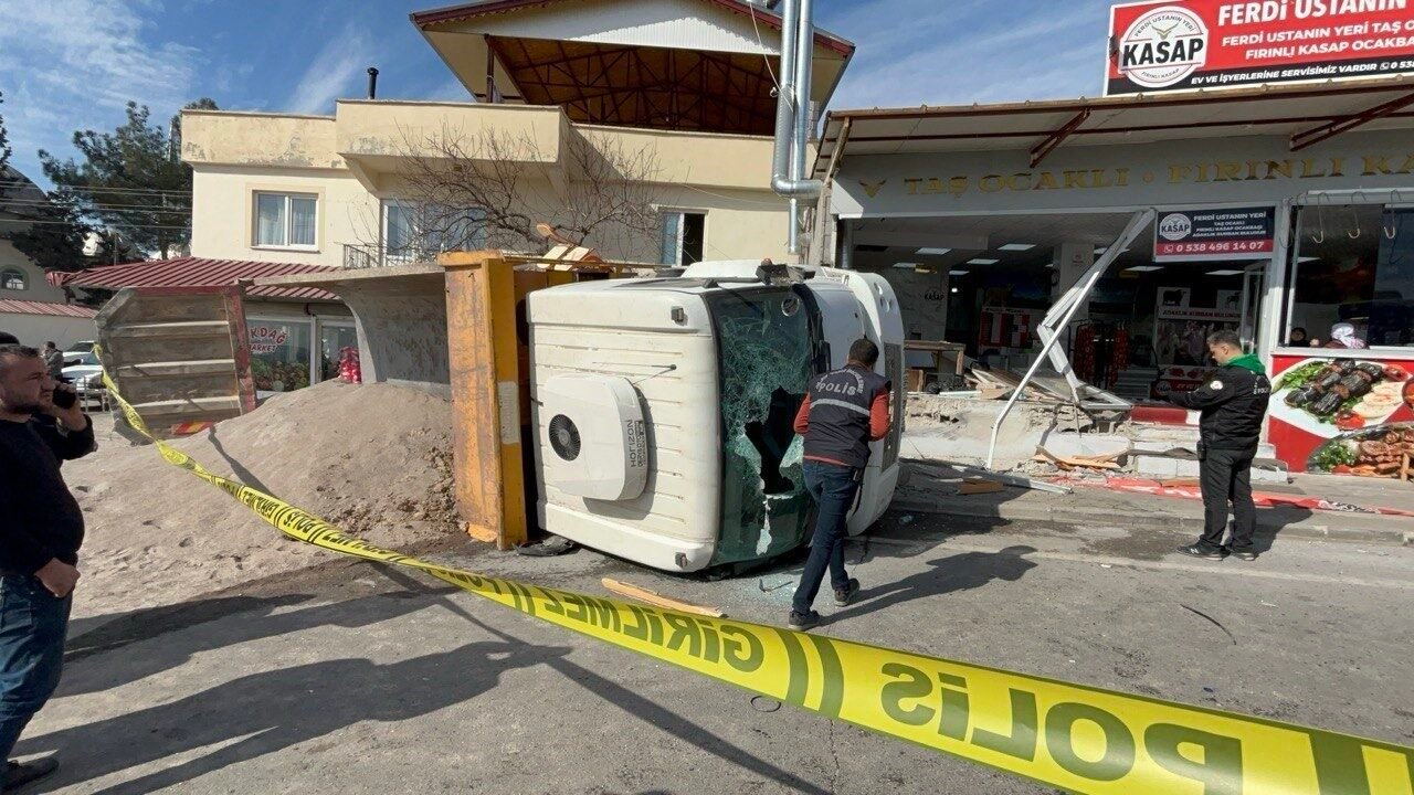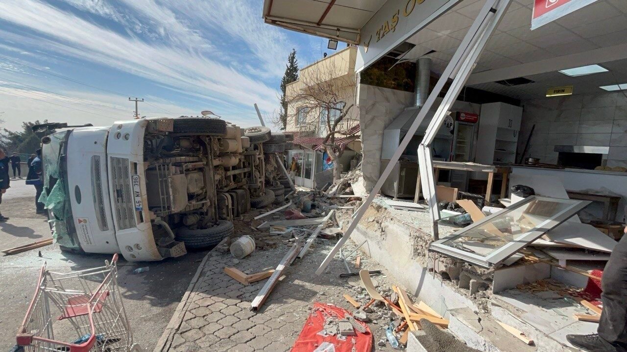 Kahramanmaraş’ta freni patlayan hafriyat kamyonu önce halk otobüsüne daha sonra alanda bulunan iş yerine çarpınca 6 kişi yaralandı.