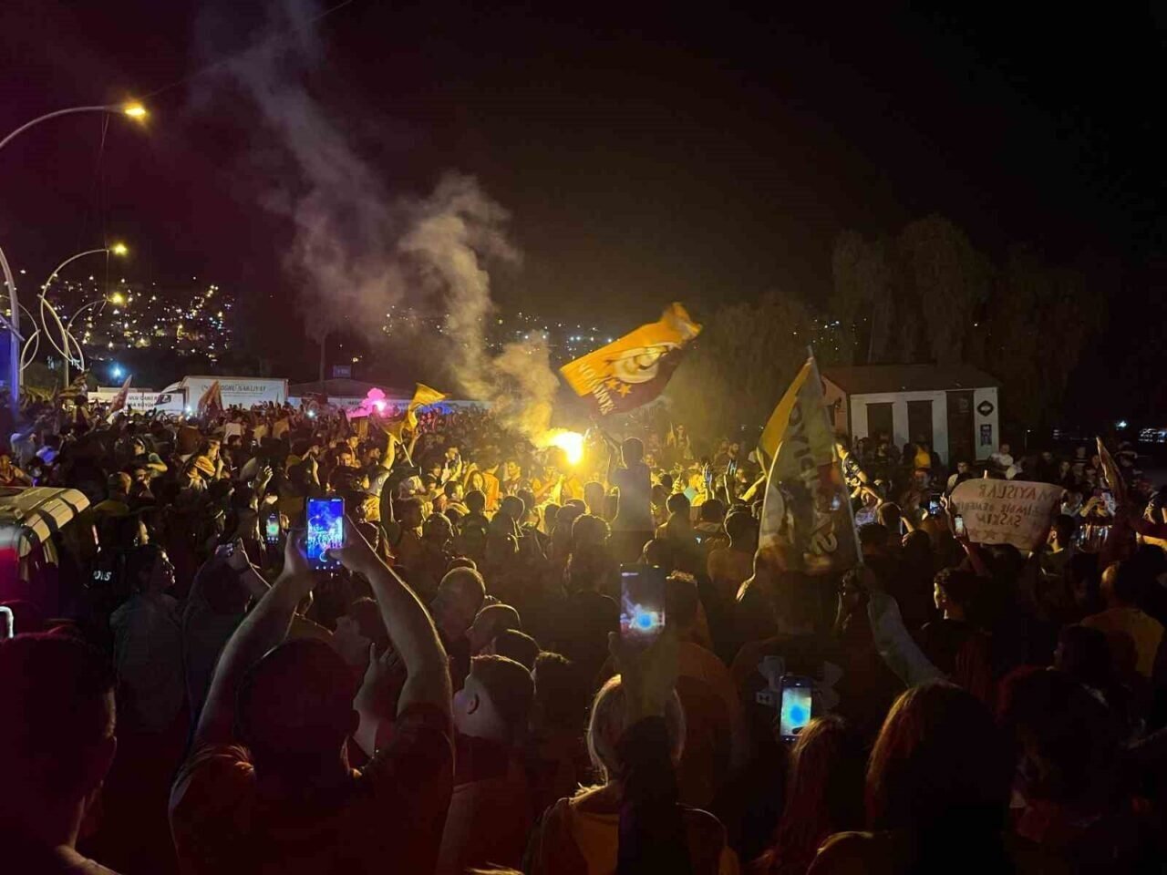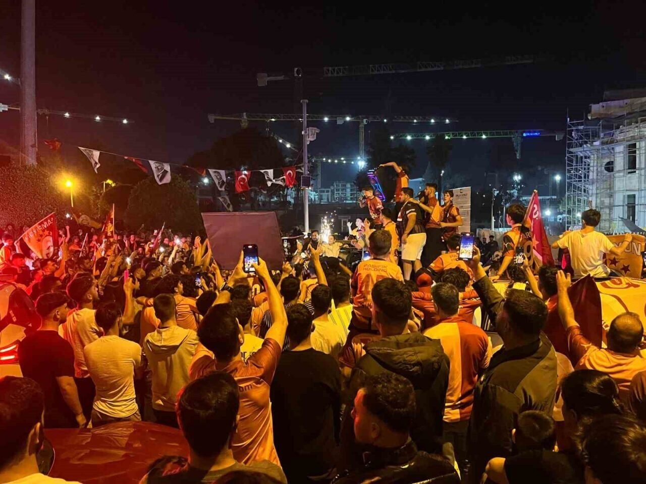 2024-2025 sezonu Trendyol Süper Ligi’nin bitimine iki hafta kala üst üste üçüncü şampiyonluğunu ilan eden Galatasaray toplamda da 25. şampiyonluğuna ulaştı. Maçın bitiş düdüğüyle birlikte Hatay’ın Antakya ilçesi kent meydanına akın eden sarı-kırmızılı taraftarlar şampiyonluğu doyasıya kutladı. Ellerindeki meşaleler ve Galatasaray bayraklarıyla marşlar söyleyen taraftarlar, meydanı bayram havasına çevirerek 25. şampiyonluğu coşkuyla kutladı.
