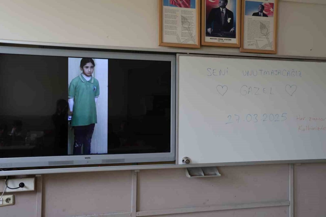 Okulda örnek davranışları ve çalışkanlığı ile sevildiği öğrenilen Gazel için sınıf arkadaşları fotoğraflarından bir anma videosu hazırladı, sırasına da karanfillerle birlikte fotoğrafını koydu.