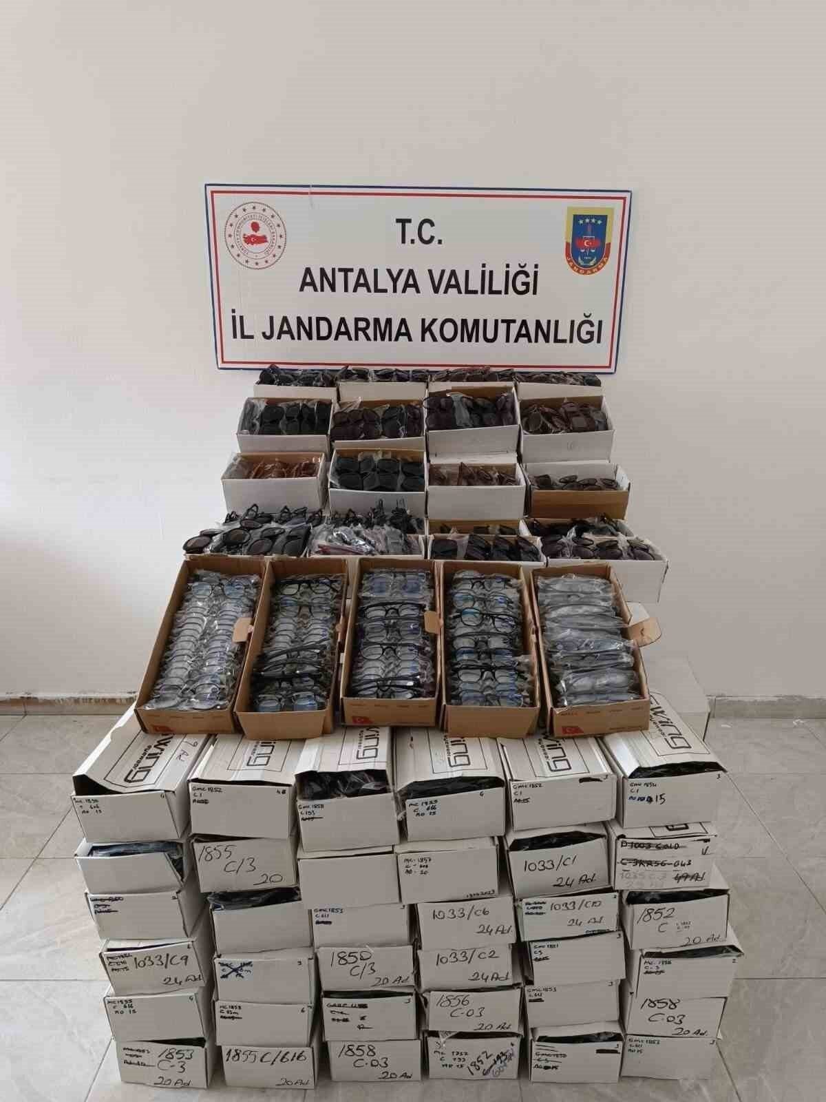 Antalya İl Jandarma Komutanlığı Kaçakçılık ve Organize Suçlarla Mücadele Şube Müdürlüğü ile Gazipaşa İlçe Jandarma Komutanlığı ekiplerince savcılık koordinesinde kaçakçılıkla mücadele kapsamında yürütülen çalışmalarda şüpheli görülen bir araç durduruldu. Araçta yapılan aramada, 2 bin 500 kaçak güneş gözlüğü ile 500 çerçeveli gözlük ele geçirildi. Ele geçirilen ürünlerle ilgili adli tahkikat başlatıldığı bildirildi.