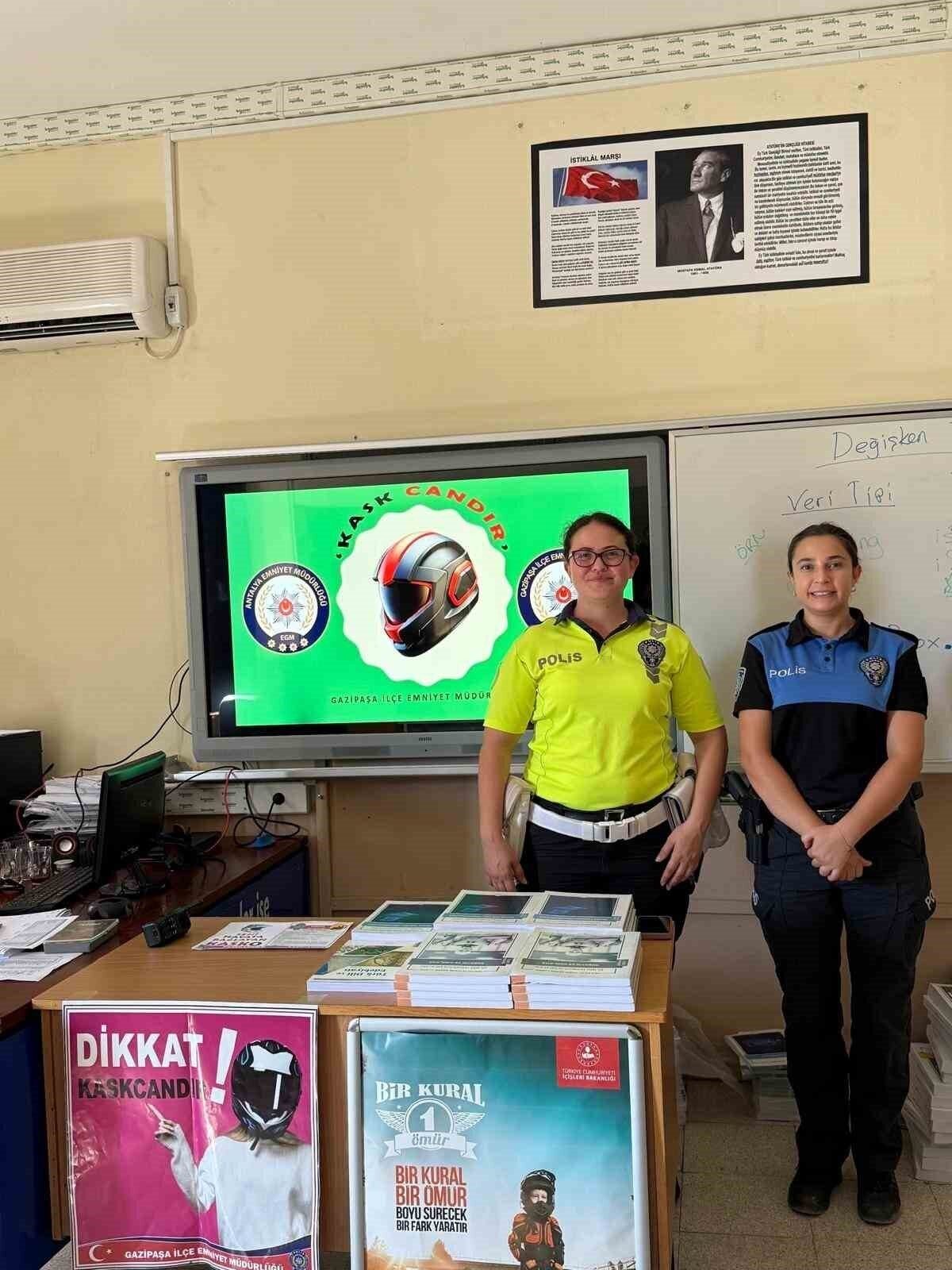 Antalya’nın Gazipaşa ilçesinde, öğrencilerin trafik güvenliği konusunda bilinçlenmesi amacıyla “Kask