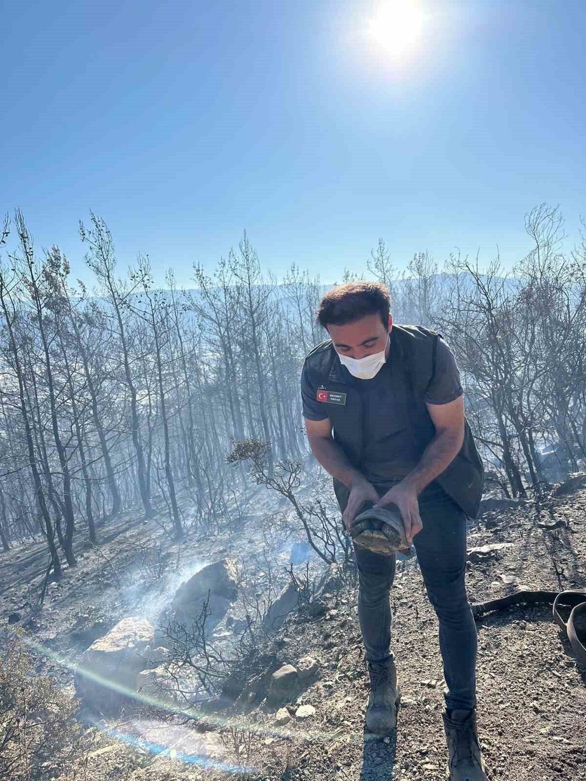 Yangın sırasında ise bir kaplumbağa yanmaktan son anda kurtarıldı. Orman muhafaza memuru Mehmet Nacar, alevlerin arasından geçerken yerde bir kaplumbağa fark etti. Nacar, kaplumbağayı elleriyle alarak yangın alanından uzaklaştırdı ve ona su içirdi. Doğal yaşamdan koparılmayan kaplumbağa, daha sonra güvenli bir alanda yeniden doğaya salındı.