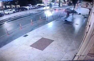 Kazayı otomobilin arkasından motosikletiyle takip eden kadın sürücü de izlerken, refüj sulaması nedeniyle kayganlaşan yolda kontrolünü yitirerek motosikletiyle birlikte refüje düştü. Çarpmanın ardından birkaç metre toprak zeminde sürüklenen kadın, kazayı hafif sıyrıklarla atlattı. Sürücü olay sonrası bulunduğu yerden kalkarak motosikletiyle birlikte bölgeden ayrılırken, o anlar çevredeki bir iş yeri kamerasına yansıdı.