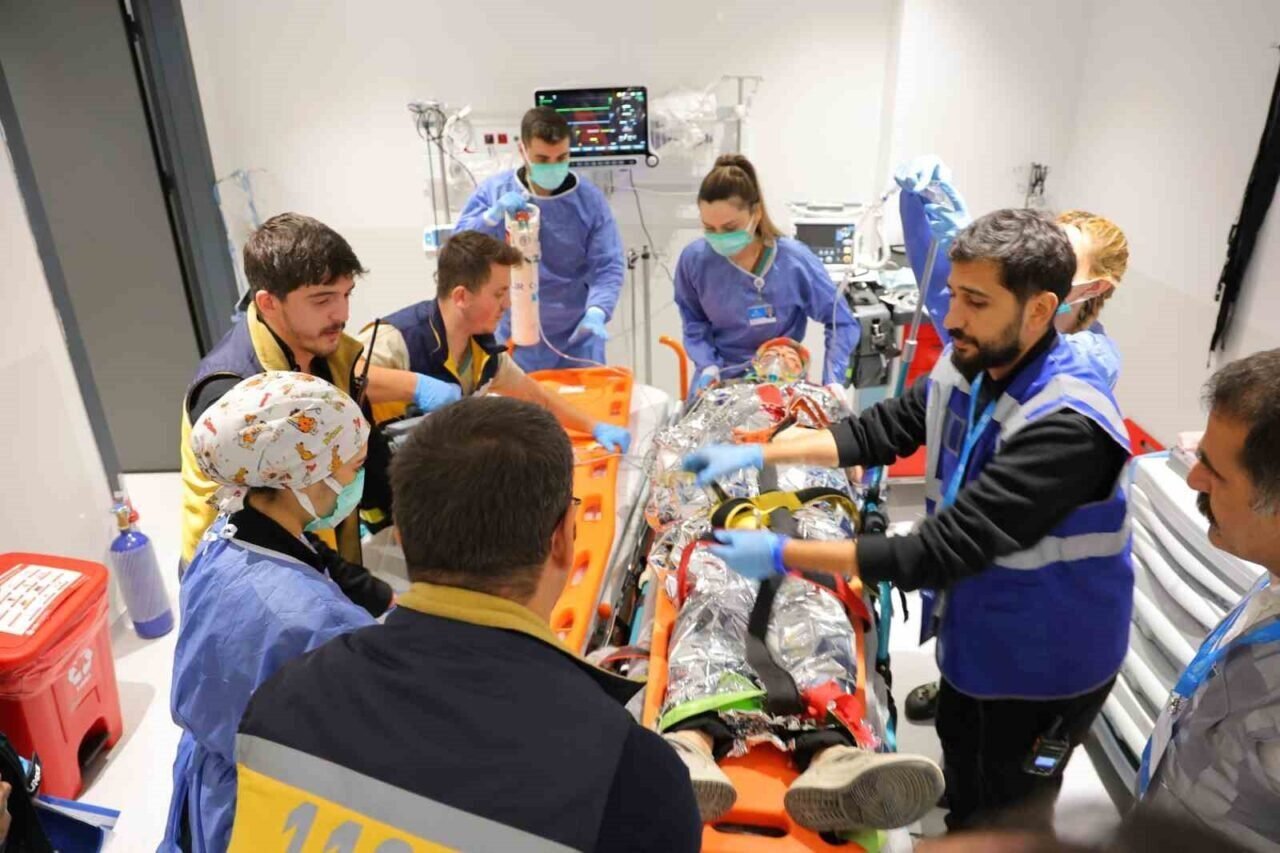 Kahramanmaraş HG Hospital’da depreme hazırlık kapsamında geniş katılımlı tatbikat gerçekleştirildi. Senaryo gereği kentte meydana gelen depremde enkaz altından çıkarılan 60 yaralıdan 9’u, üç ayrı ambulansla hastanenin acil servisine sevk edildi. Gerçeğini aratmayan tatbikat, hem personelin hem de vatandaşların afet anındaki davranışlarını ölçmeyi amaçladı. Tatbikat çerçevesinde ambulansların hastane bahçesine peş peşe giriş yapmasıyla birlikte acil serviste yoğun bir hareketlilik yaşandı. Yaralı rolündeki vatandaşlar, sağlık ekipleri tarafından hızlıca sedyelere alınarak müdahale odalarına taşındı. Senaryo gereği yaralı yakınlarının bağırıp çağırması, sinir krizi geçirmesi ve bilgi almak için acil servise yüklenmesi, tatbikatın gerçekçiliğini artırdı. Acil servis ekipleri, doktorlar, hemşireler, güvenlik personeli ve hastane yönetimi, olayın tüm aşamalarında görev alarak koordinasyon becerilerini test etti. Enkazdan çıkarılan yaralıların bir kısmına travma müdahalesi yapılırken, bazıları acil görüntüleme alanına yönlendirildi.