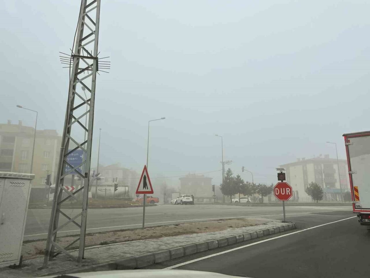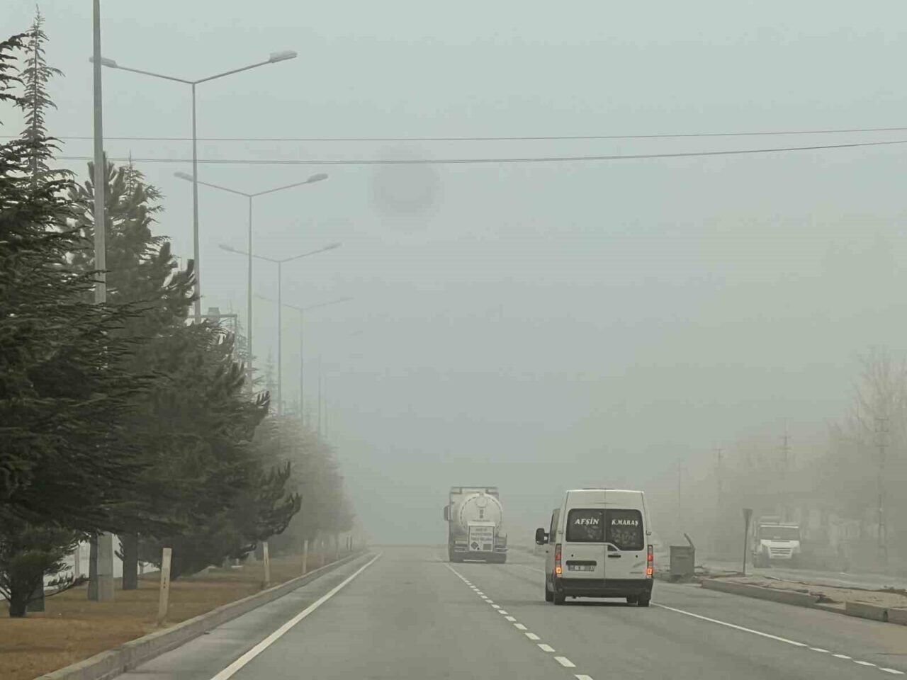 Kahramanmaraş’ın Göksun ilçesinde sis etkili oldu. Göksun ilçe merkezinde görüş mesafesi yer yer 20 metreye kadar düşerken, sürücüler trafikte ilerlemekte zorlandı. Göksun-Kayseri ve Göksun-Kahramanmaraş karayollarında sis nedeniyle araçlar kontrollü şekilde ilerledi. Trafik ekipleri, sürücülere hız düşürme ve takip mesafesini koruma uyarısında bulundu. Yoğun sis nedeniyle bazı bölgelerde binalar ve ağaçlar neredeyse görünmez hale geldi.