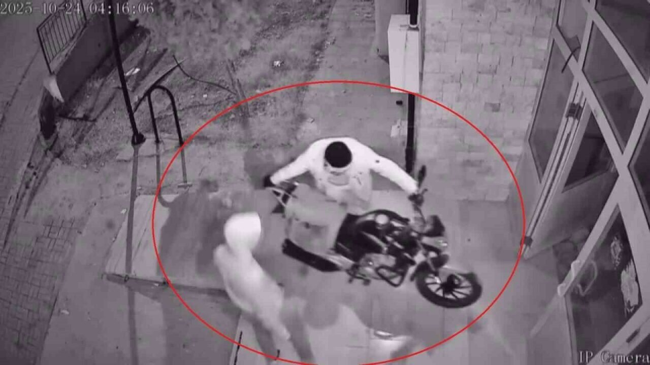 Hatay’da rahat tavırlarla girdikleri binadan motosiklet çalarak kayıplara karışan 2 şahsın o anları, güvenlik kamerasına yansıdı.