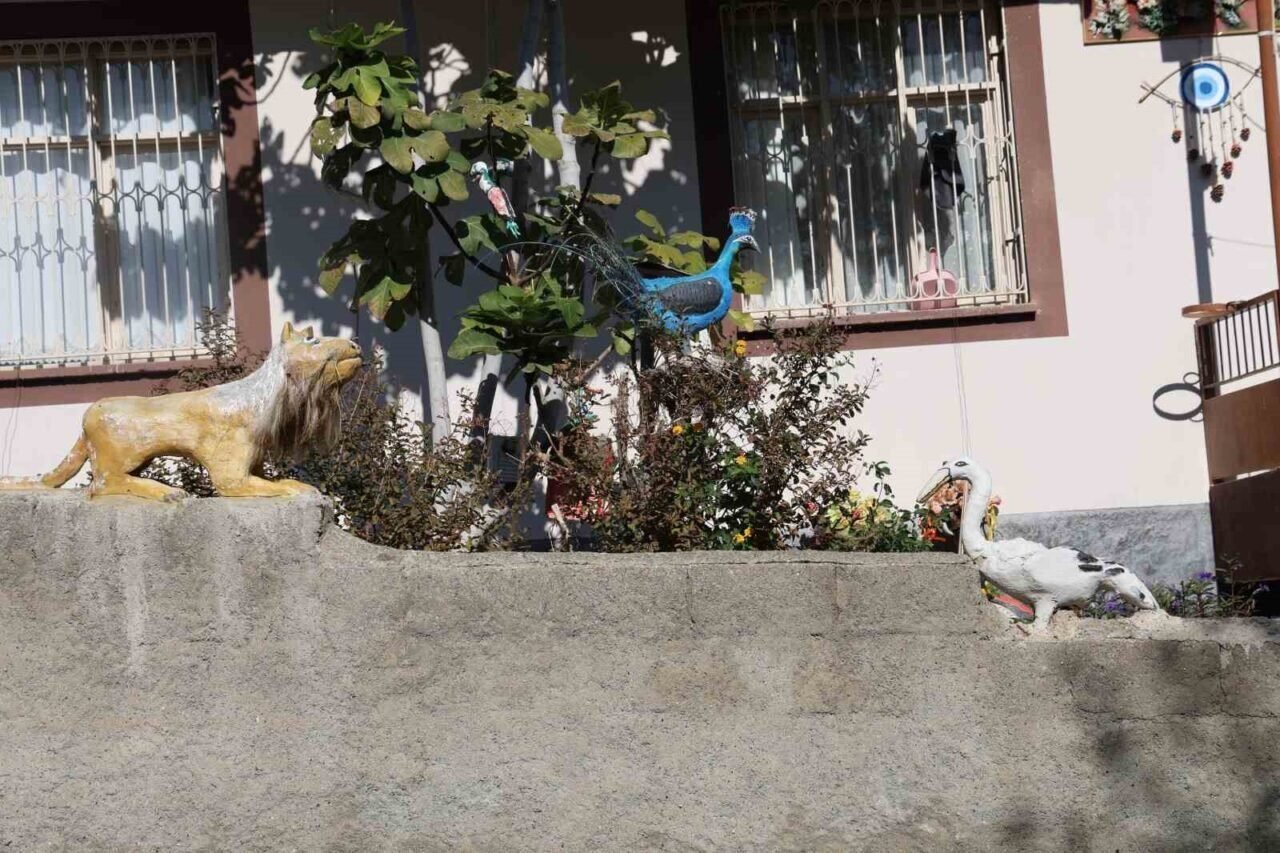 “Eski sandıkları, fırın kapaklarını, atık bezleri, ağaç kabuklarını kendim tasarlıyorum. Halk eğitimden el sanatları usta öğreticisi olarak emekliyim. Evin önüne bir leylek yapmak isterken başladım bu işe. Bir atık lambader elime geçti, onu leyleğe dönüştürürken yuvasını yaptım. Sonra aslan, tavus kuşları, Bremen Mızıkacıları derken ortaya çok güzel işler çıktı. Su kabaklarını, ağaç ve kumaş dallarını, atık köpükleri kuş yuvasına dönüştürdüm. Emekli oldum, çocuklarım evlendi, torunlarım oldu. Burası benim huzur ve terapi merkezim. Arkadaş aramıyorum, bunları yaparak dinleniyorum. Görenler hayran kalıyor. Gençliğimizde nakışla terapi yapardık. Bizim çocukluğumuzda telefon yoktu, sosyal medya yoktu. Sanat ve el işiyle motive olurduk. Şimdi de bu el sanatını kendime terapi olarak kullanıyorum.”