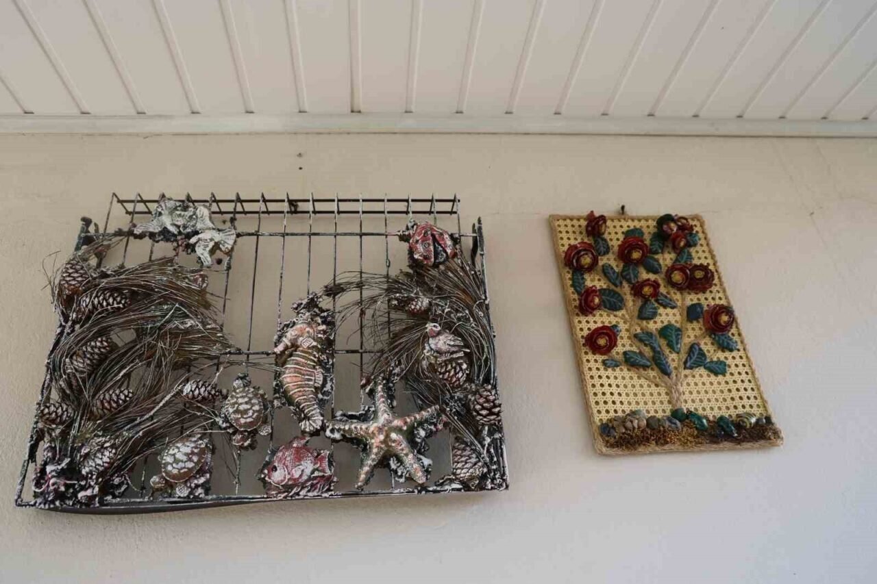 Kuzu, su kabaklarını, salyangoz kabuklarını, eski sandıkları ve kozalakları sanata dönüştürdüğünü belirterek emeklilik sürecinin kendisine adeta terapi olduğunu söyledi.