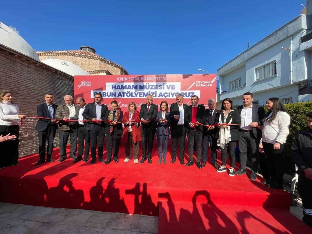 Adana Büyükşehir Belediyesi Seyhan İlçesi Sarıyakup Mahallesi’nde Hamam Müzesi ve Sabun Atölyesi ile yine Seyhan İlçesi Bey Mahallesi’nde mahalle merkezinin açılışları yoğun katılım coşkuyla yapıldı. Açılışlara Başkan Zeydan Karalar’la birlikte, eşi Nuray Karalar, ilçe belediye başkanları, Adana milletvekilleri, siyasiler, muhtarlar ve Adanalılar katıldı.