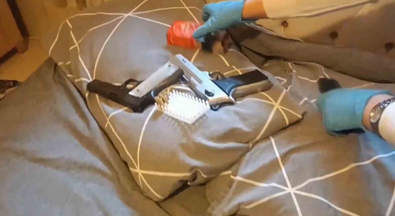 Hatay’da tehdit ve genel güvenliğin kasten tehlikeye sokulması olayıyla ilgili 3 adrese yapılan operasyonda, yatağa saklanmış 2 adet tabanca ve fişek ele geçirildi.