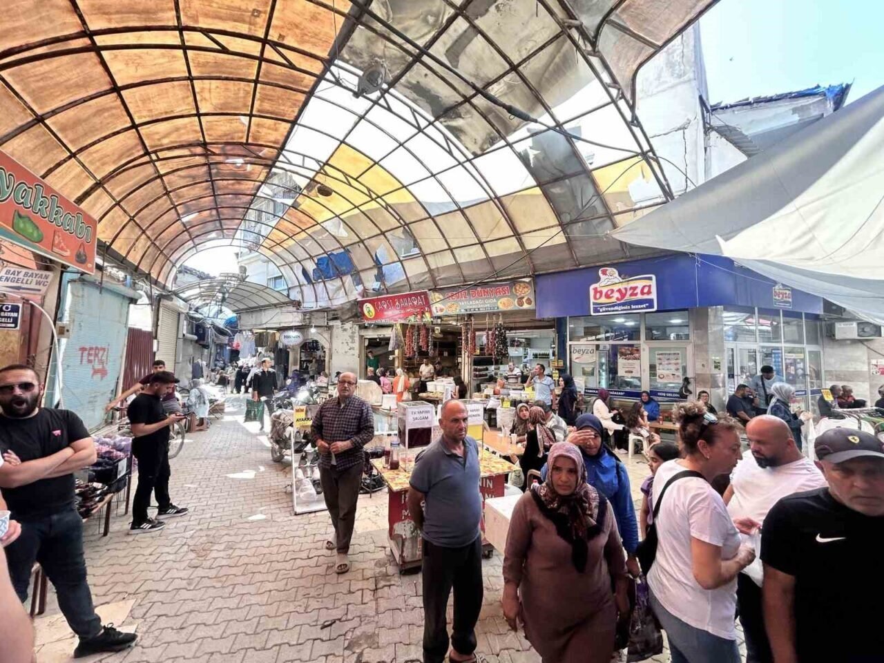 Kahramanmaraş merkezli depremlerde yerle bir olan Hatay’da, asrın felaketinin yaraları sarılmaya devam ediyor. Depremde zarar gören ve ticaretin merkezi konumunda olan Antakya’daki tarihi Uzun Çarşı’da bir yandan inşa işlemleri devam ederken, bir yandan da enkaza dönen çarşıdaki iş yerlerinde alışveriş devam ediyor. Hataylılar, her bayram olduğu gibi Kurban Bayramı alışverişi için de son kez tarihi Uzun Çarşı’yı tercih ettiler. Bayramın ardından ihya ve inşa süreci başlayacak olan Uzun Çarşı’da afetzede vatandaşlar son bayram alışverişini yaptılar. Uzun Çarşı esnafıyla ve vatandaşlarla bayramlaşan Masatlı, gelecek bayramda buranın hem tarihi dokusunun ayakta olduğu hem de modern yapılarının yapıldığı ve esnafımızın da içinde ticaretlerini sürdüreceği bir şekilde tacirlerimizin hizmetine sunacaklarını söyledi.