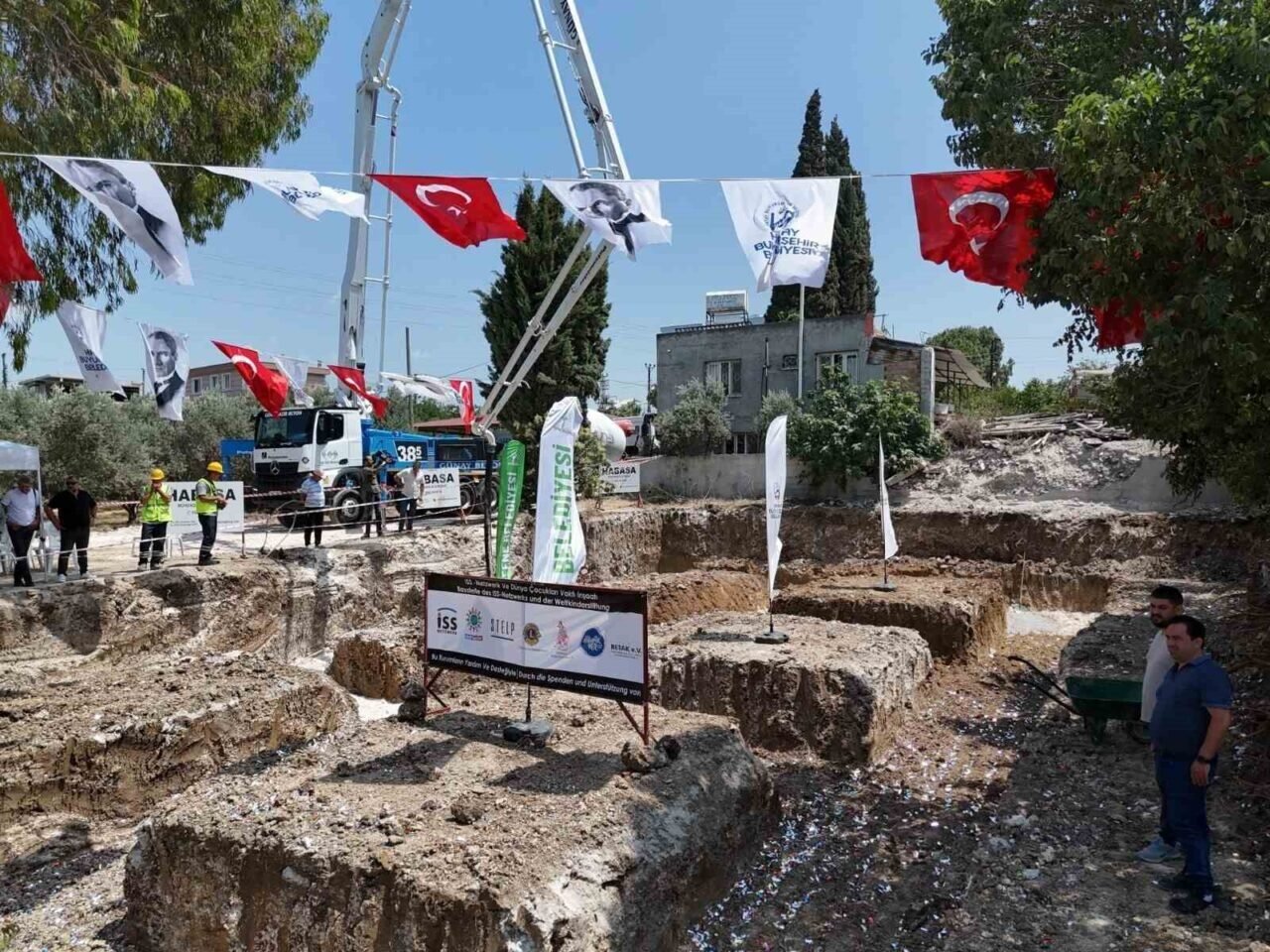 HATAY’IN DEFNE İLÇESİNDE 66 ÇOCUĞA DAHA KALİTELİ EĞİTİM ALACAĞI VE 3 DİLDE EĞİTİM VERİLECEĞİ KREŞİN İNŞASI TEMEL ATMAYLA BAŞLADI.