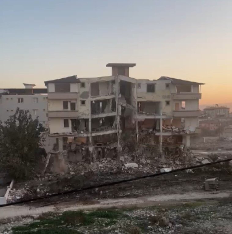 HATAY’IN ANTAKYA İLÇESİNDE 5 KATLI BİNA İŞ MAKİNESİNİN DARBESİYLE KONTROLLÜ BİR ŞEKİLDE YIKILDI.