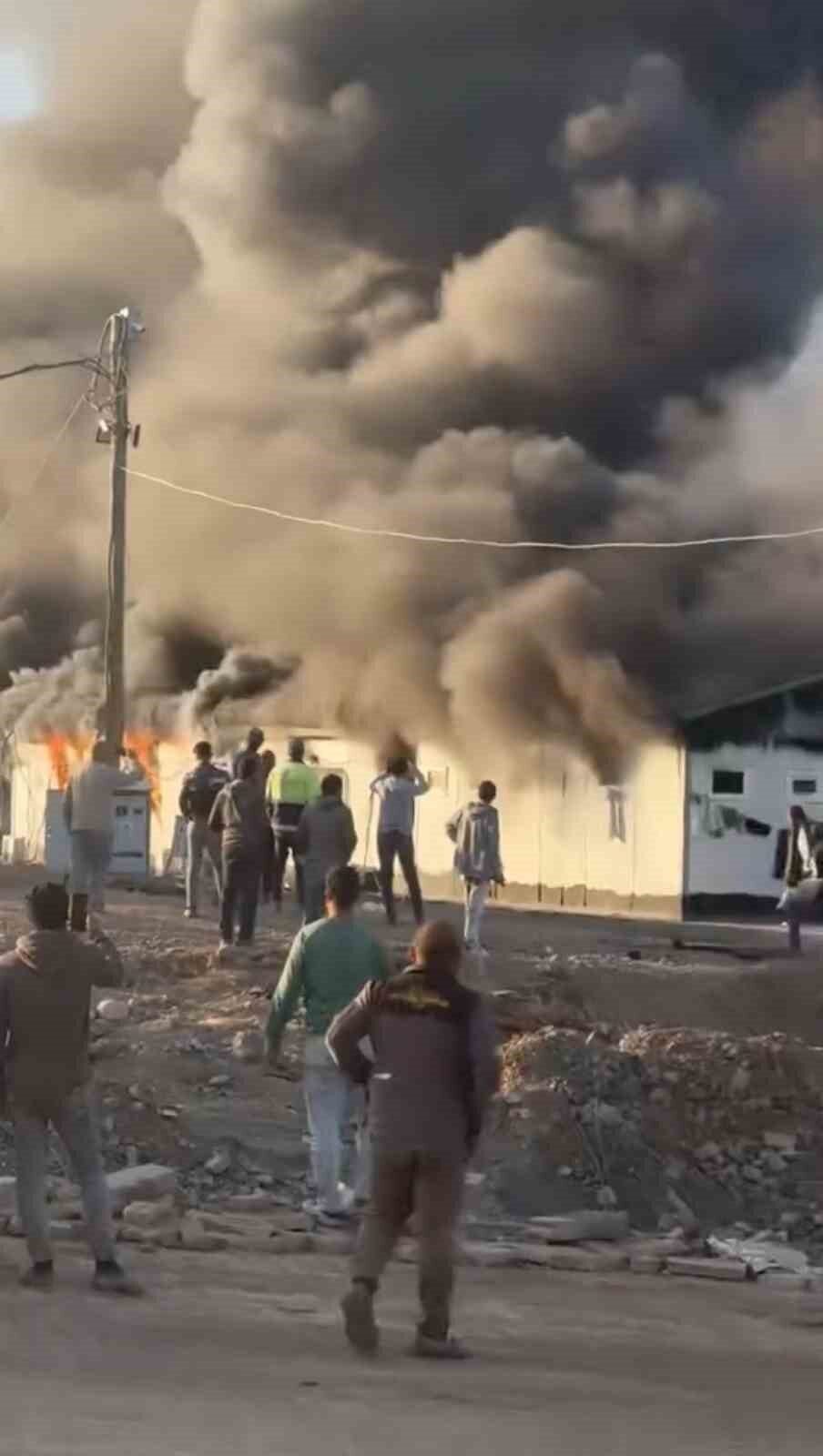 HATAY’DA ŞANTİYE ALANINDA BULUNAN İŞÇİLERİN KALDIĞI KONTEYNER YATAKHANE ALEVLERE TESLİM OLDU. CAN KAYBI VE YARALANMA YAŞANMADAN KONTROL ALTINA ALINAN YANGINDA VATANDAŞLARIN YAŞADIĞI PANİK KAMERAYA YANSIDI.