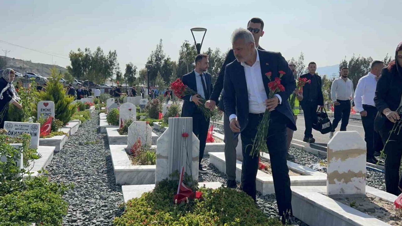Kahramanmaraş merkezli depremlerde Hatay’da 25 bine yakın insan vefat etmişti. Depremde hayatını kaybeden vatandaşlar için Antakya ilçesi Narlıca Mahallesi’nde deprem mezarlığı kurulmuştu. Her bayram öncesi olduğu gibi bu bayramda arefe gününde de, Hatay Valisi Sayın Mustafa Masatlı, Hatay Büyükşehir Belediyesi Başkanı Mehmet Öntürk ve protokol üyeleri tarafından depremde hayatını kaybeden vatandaşların mezarlarına karanfil bıraktı, dualar edildi.
