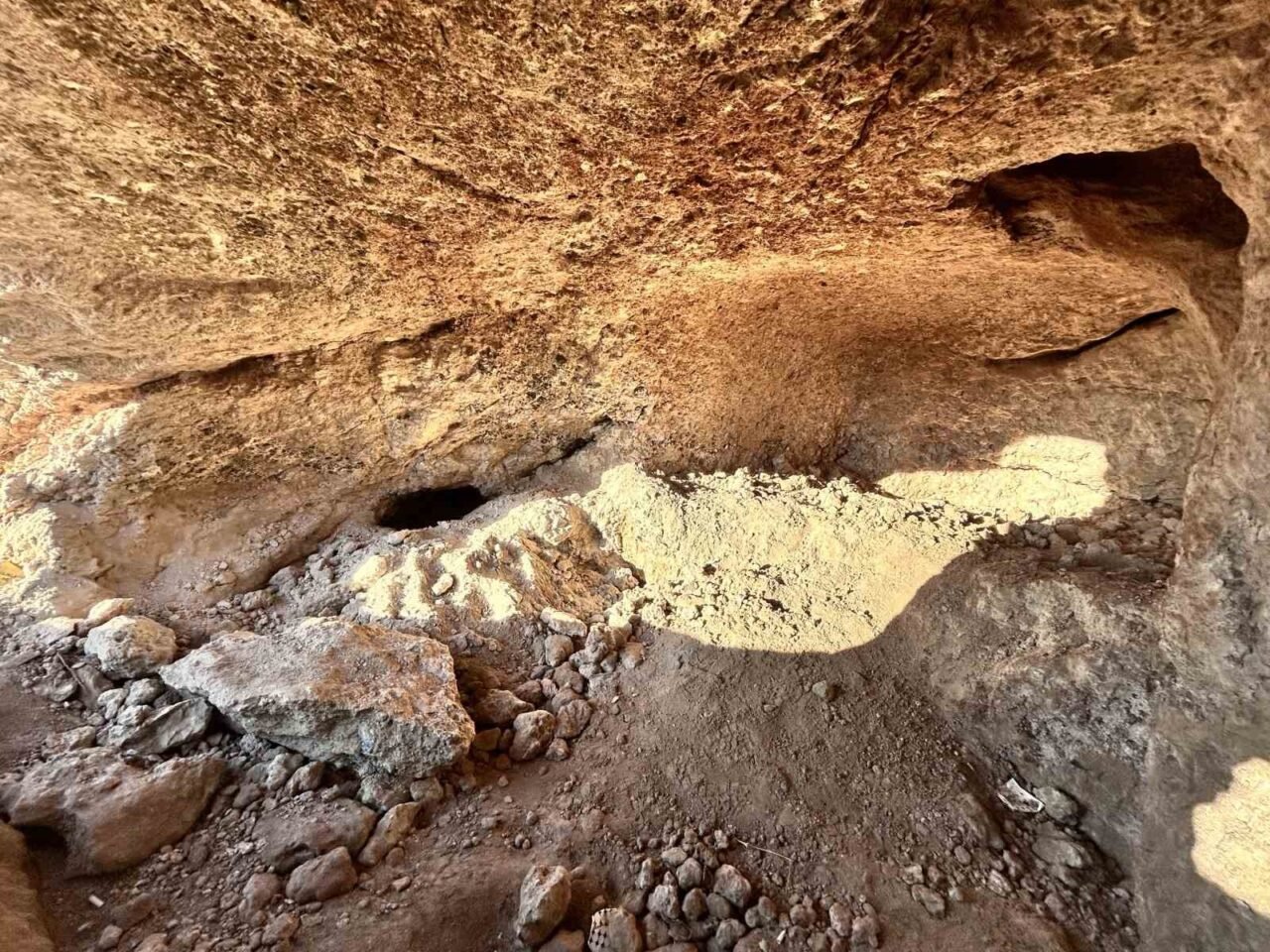 Hatay’da inşaat çalışmaları esnasında bulunan kaya mezar odalarının iç kısmı müze ekiplerinin çalışmalarını tamamlamasının ardından görüntülendi.