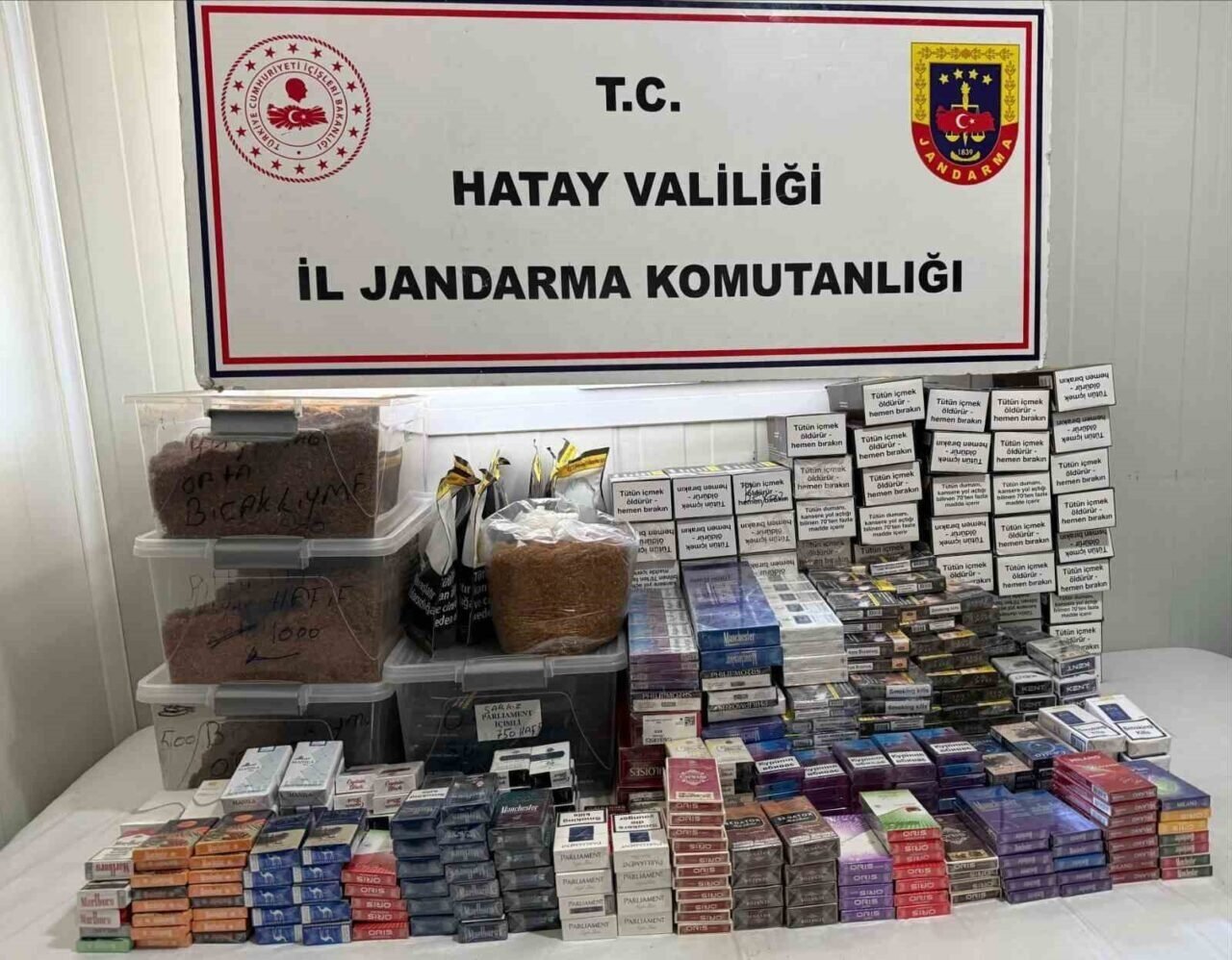 Hatay İl Jandarma Komutanlığı Ekiplerince, uyuşturucu madde ile mücadele ve kaçakçılıkla mücadele çerçevesinde 36 şüpheli şahsın yapılan ev üst ve araç aramasında; 9 kilo 679 gram Kubar Esrar, 41 bin adet makaron, 4 bin 991 paket kaçak sigara, 164 kilo kıyılmış tütün, 101 kök kenevir bitkisi, 100 gram kenevir tohumu, 1 bin 260 litre kaçak alkol, 456 adet sahte taklit ürün, 10 adet ruhsatsız tabanca ele geçirildi.