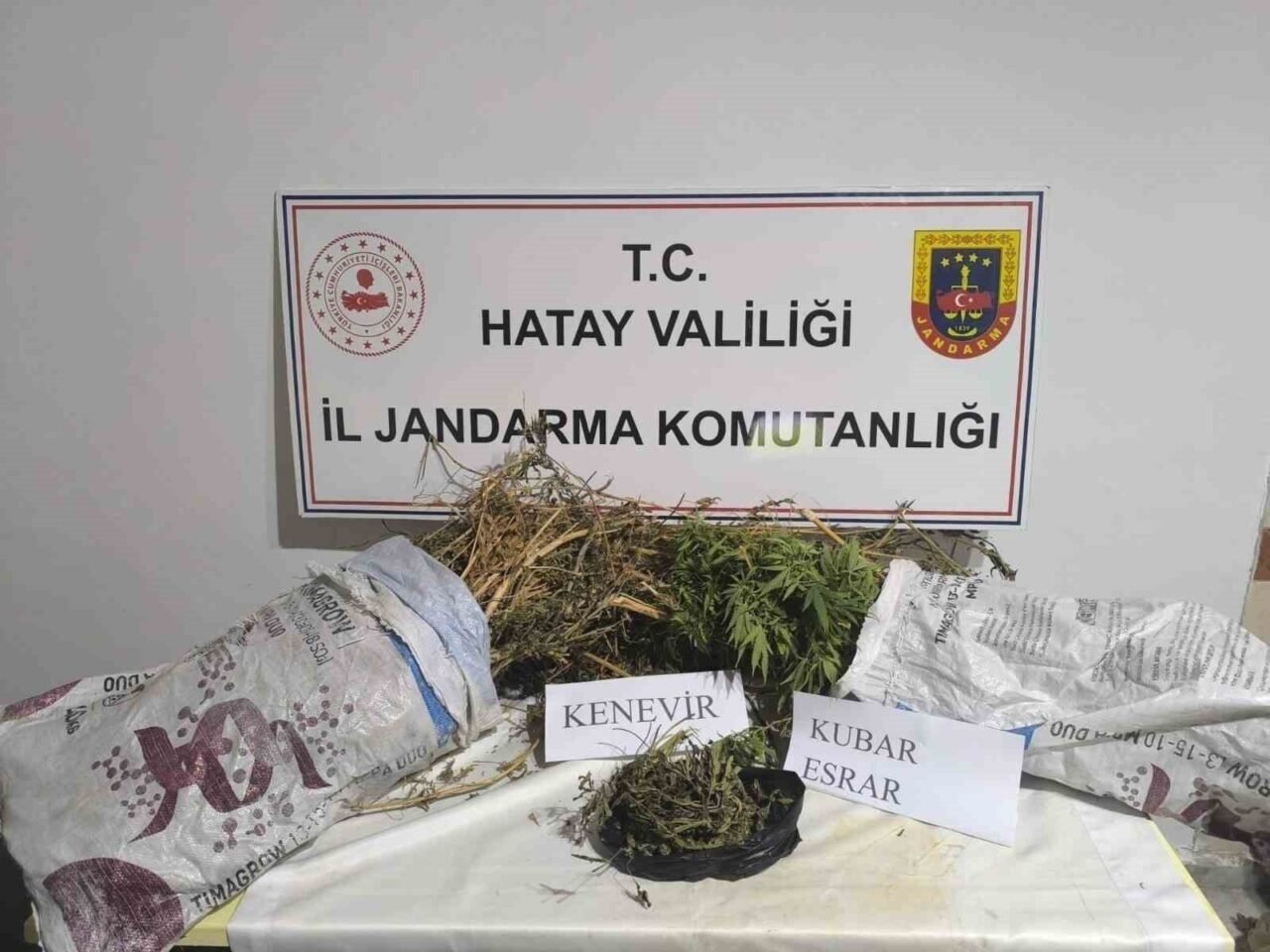 Hatay İl Jandarma Komutanlığı Ekiplerince, uyuşturucu madde ile mücadele ve kaçakçılıkla mücadele çerçevesinde 36 şüpheli şahsın yapılan ev üst ve araç aramasında; 9 kilo 679 gram Kubar Esrar, 41 bin adet makaron, 4 bin 991 paket kaçak sigara, 164 kilo kıyılmış tütün, 101 kök kenevir bitkisi, 100 gram kenevir tohumu, 1 bin 260 litre kaçak alkol, 456 adet sahte taklit ürün, 10 adet ruhsatsız tabanca ele geçirildi.