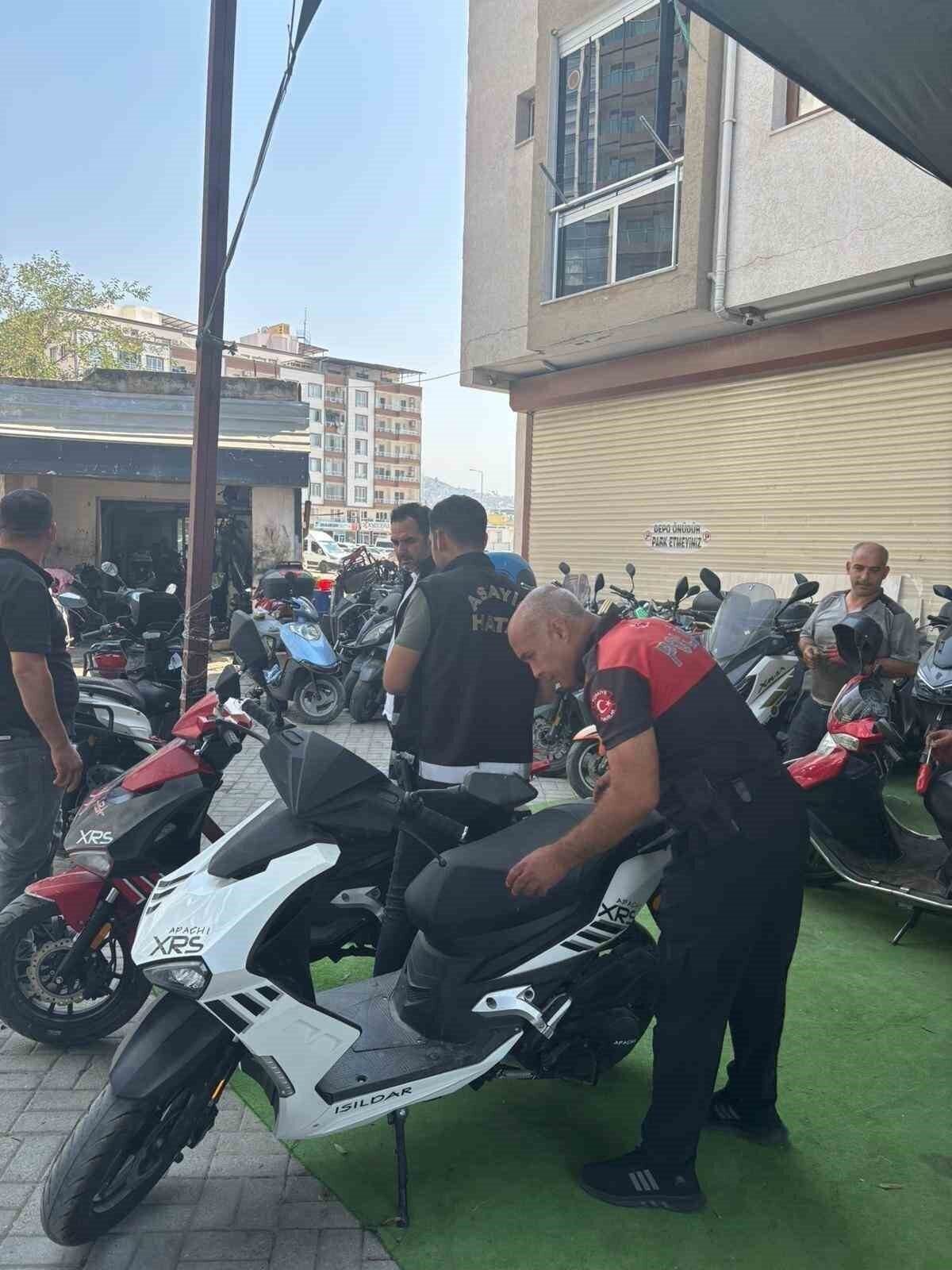 Hatay Emniyet Müdürlüğü görevlileri kentte asayiş ve huzuru sağlamak amacıyla çalışmalarını aralıksız sürdürüyor. Polis ekiplerince İskenderun genelinde faliyet gösteren motosiklet tamircilerine yönelik olarak uygulama yapıldı. Ekipler tarafından 23 iş yerinde gerçekleştirilen denetimlerde; 150 motosiklet kontrol edildi ve 80 şahıs sorgulandı. Denetimlerde 8 iş yerinin ruhsatsız faaliyet gösterdiği, 3 iş yerinin ikinci el satış sözleşmesi yapmadığı ve 4 iş yerinin vergi levhasının bulunmadığı belirlendi. Tespit edilen eksiklikler nedeniyle iş yerlerine gerekli idari işlemler uygulandı.