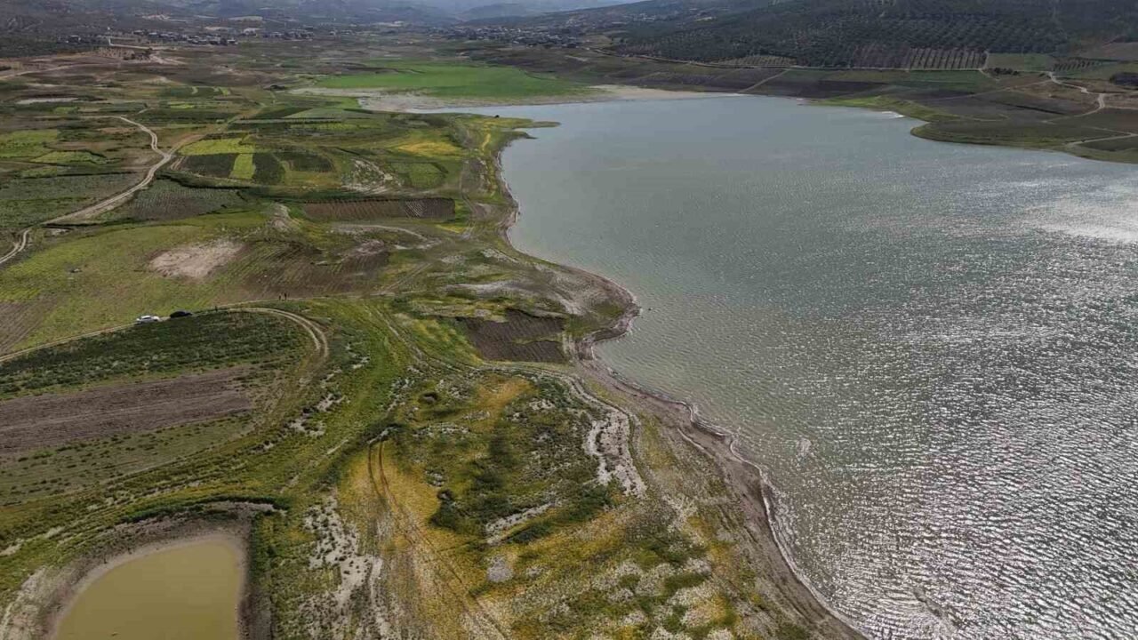 Hatay’da Amik Ovası’nın su kaynaklarından olan Yarseli Barajı’nda son 65 yılın en kurak yılının yaşanmasından dolayı doluluk oranı yüzde 5’in altına düştü. Metrelerce çekilmenin yaşandığı barajı vuran kuraklık havadan görüntülendi.