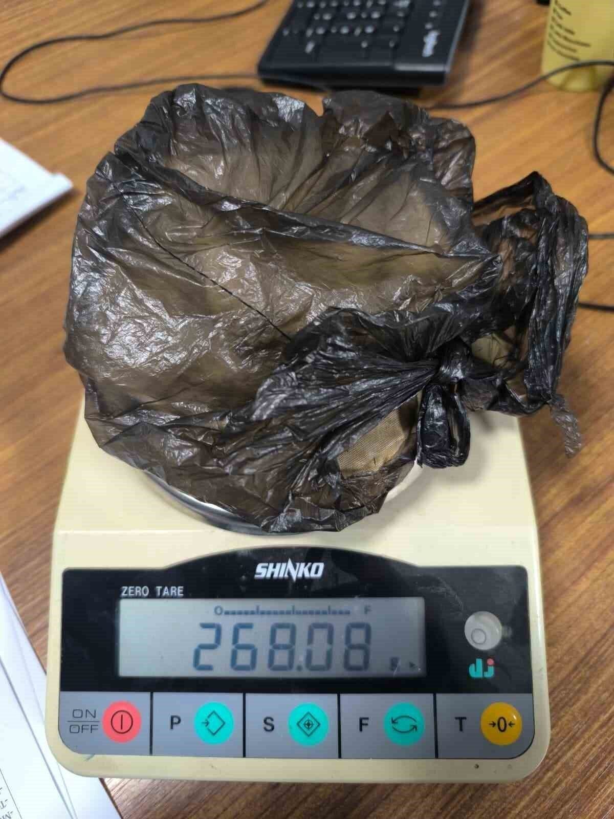Yapılan aramada, 2 adet beyaz kese torba içerisinde 268 gram takoz Esrar maddesi ele geçirildi.
