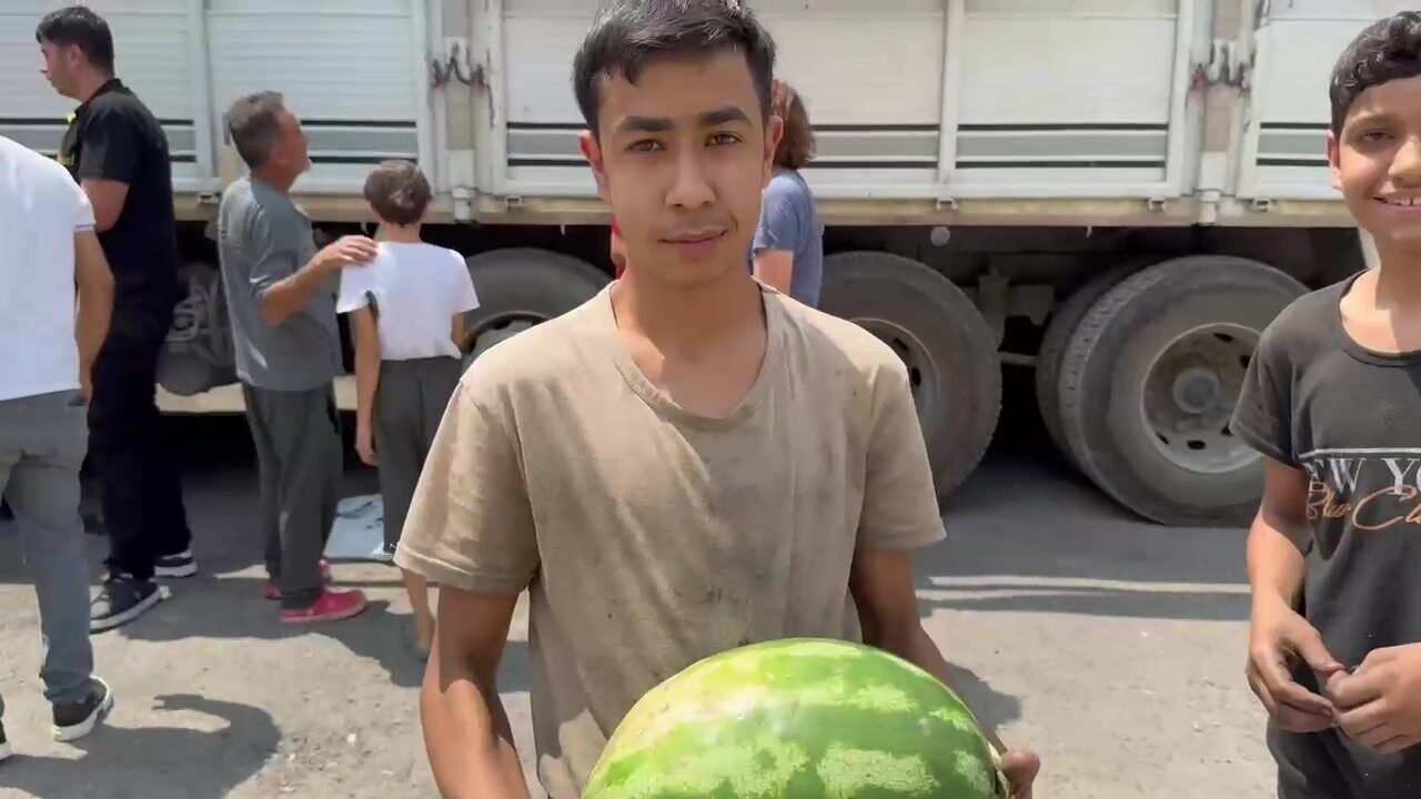 Hatay’da hayırsever esnaf, bir kamyon dolusu 20 ton karpuzu vatandaşlara bedava dağıtarak hem ürünün tarlada kalmasıyla zor günler geçiren esnafa destek oldu hem de depremzede vatandaşlara karpuz ziyafeti yaşattı. Vatandaşların yoğun ilgisiyle kamyon dolusu karpuz 1 saat içinde bitti.