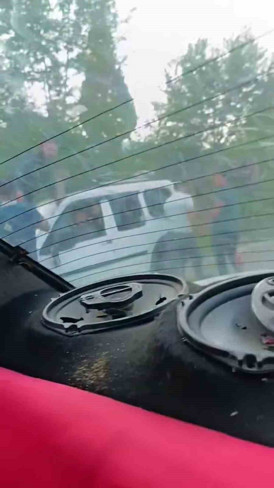 Hatay’da yaşanan trafik kazası sonrası bir grup, çarpıştıkları araca saldırarak vatandaşlara korku dolu anlar yaşattılar.