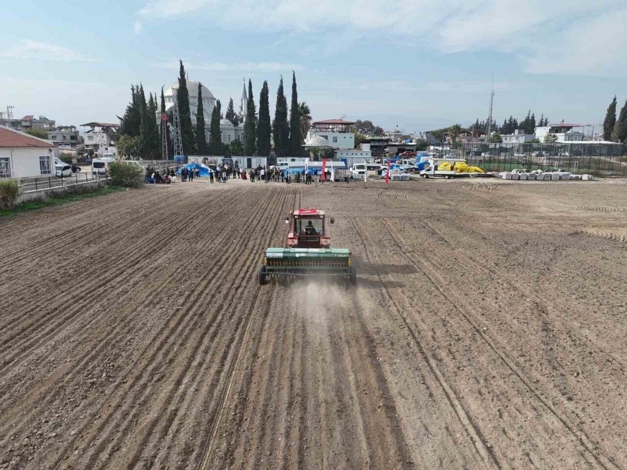 Tarımsal Hizmetler Dairesi Başkanı Sadettin Çakır, “Bu memleketin en önemli ekonomik unsuru ziraattır. Ve bu ziraatın en önemli unsurlarından biri de çekirdekten yetişmektir. Bu arazinin hiçbir şekilde boş kalmasını istemiyorduk. Bize destek olan Hatay Saadet Yusuf Mıstıkoğlu Tarım Mesleki Teknik Anadolu Lisesine teşekkür ediyoruz. Bizlere destek oldular. Daha sonra bu konuyu kendisi de çiftçi olan HBB Başkanımıza anlattığımızda bizi destekledi. Özellikle HBB Başkanımız Mehmet Öntürk’e teşekkür ediyorum. Değerli üreticiler yetiştirmek için tarım lisesine sınırsız desteğimizi elimizdeki imkanlarımızla devam ettireceğiz. Bugün burada yaklaşık 52 dönüm arazide ihtiyaç duyulan tohum ve gübreyi tamamen HBB olarak temin etmiş bulunmaktayız” dedi.