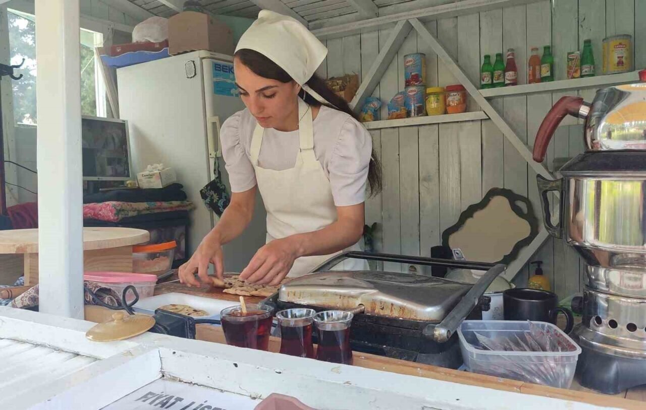 Türkoğlu ilçesi Kadın Akademisi Zafer Parkı’ndaki kulübesinde bazlama ve gözleme yaparak evinin geçimini sağlayan ve çocuklarının ihtiyacını karşılayan 28 yaşındaki Elif Kaplan, cesaret edip kendi işini kuramayan kadınlara örnek olmak istiyor.