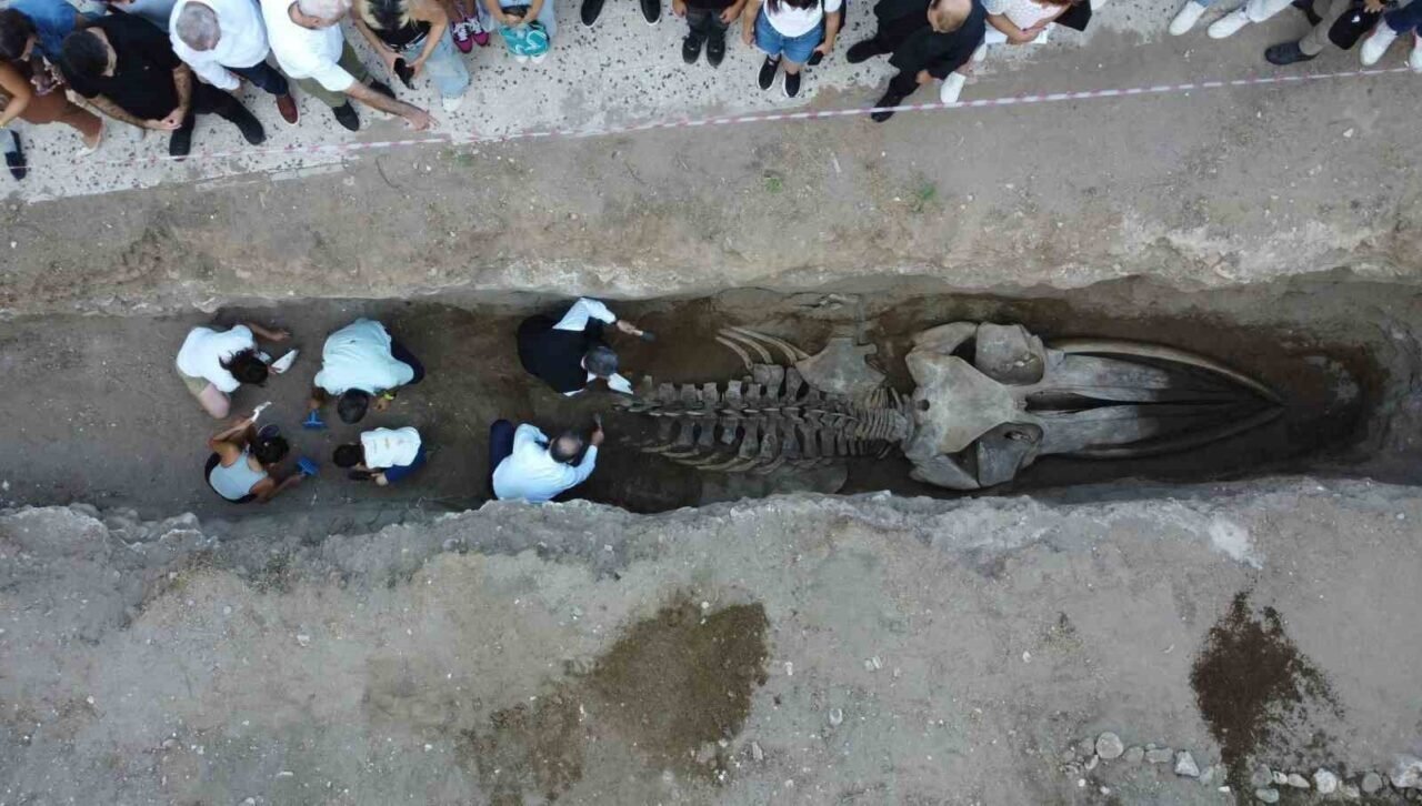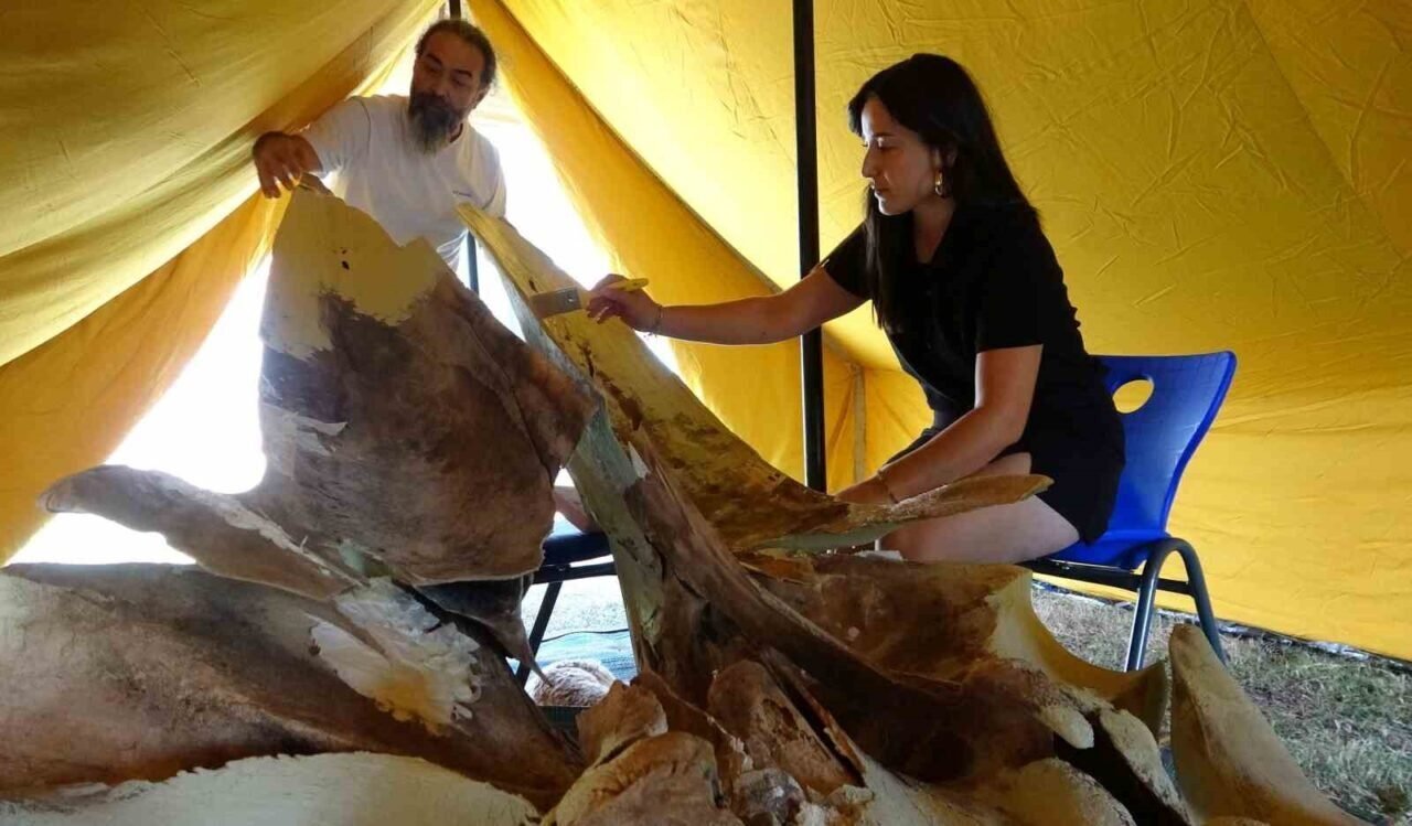 Mersin Körfezi’nde 4 yıl önce bir deniz aracının çarpması sonucu ölen Mersin Üniversitesi (MEÜ) Yenişehir Kampüsü Deniz Canlıları Müzesi bahçesine gömülen yaklaşık 16 metrelik Fin balinasının kemiklerinin çıkarılması yaklaşık bir haftada tamamlandı. ‘Balinanın Sessizliği Bilime Dönüşüyor’ projesi kapsamında yürütülen keşif kazısı çalışmalarında, şimdi dev iskeletin en kritik aşaması olan yapıştırma ve birleştirme sürecine geçildi. Kazı sırasında kırıklarla birlikte yaklaşık bine yakın kemik parçasına ulaşıldı. Bu parçalar müzenin önünde kurulan büyük çadırın altında tek tek temizlenerek, numaralandırılıyor ve doğru anatomik noktalarına yerleştirilerek yapıştırılıyor.