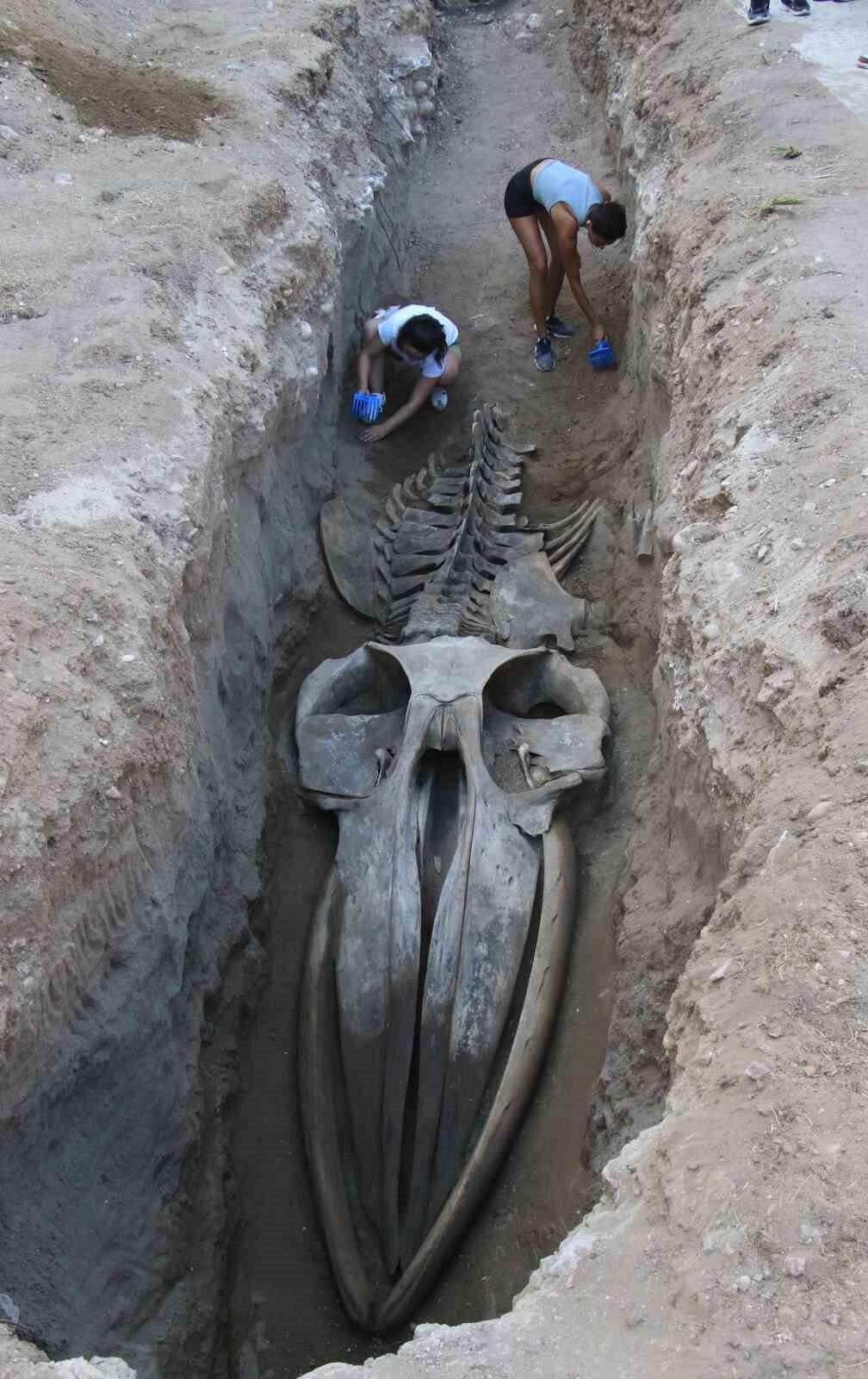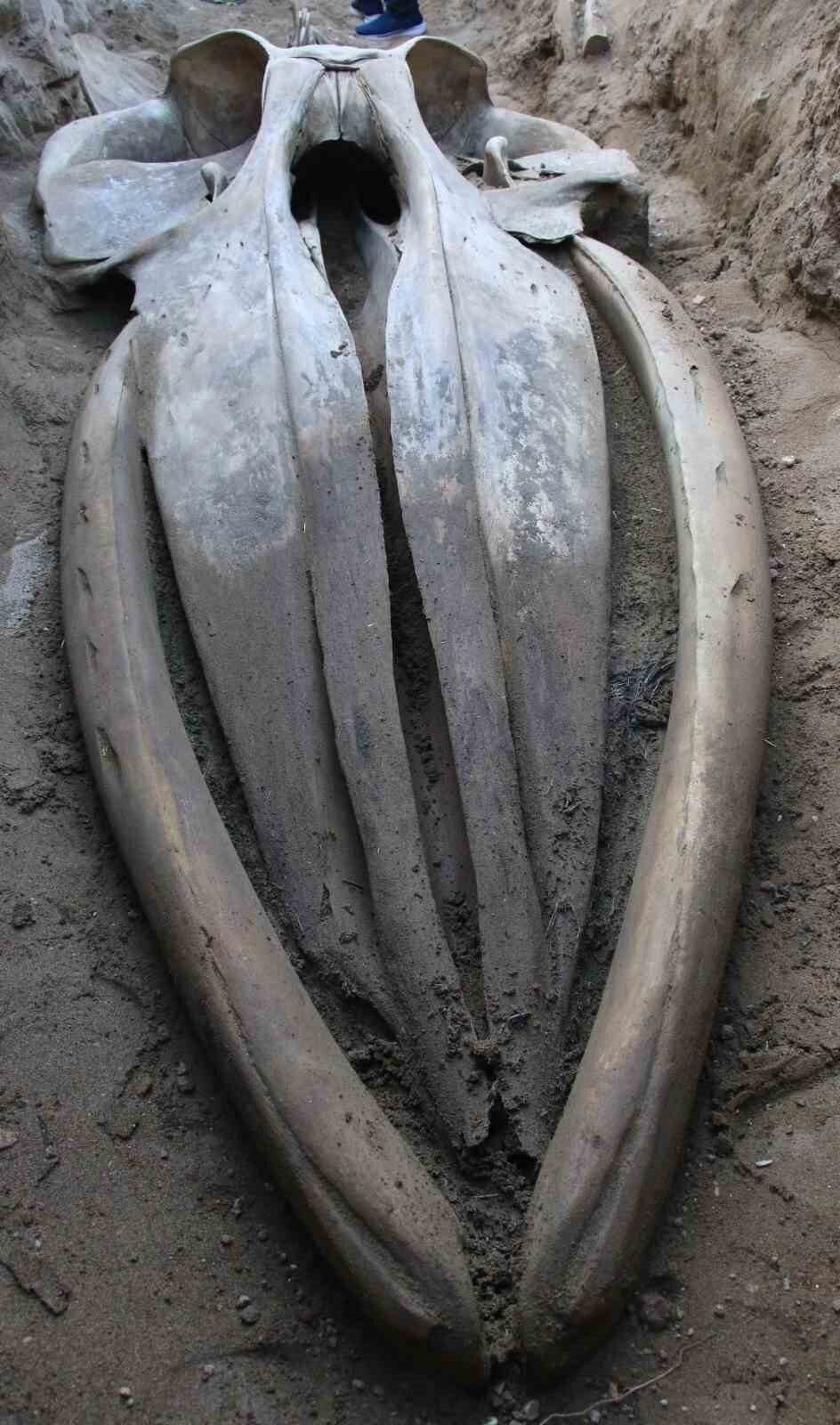 Mersin’de 4 yıl önce ölen ve müze bahçesine gömülen 16 metrelik Fin balinasının heyecanlı bir çalışmayla bir haftada çıkarılan büyüklü küçüklü bine yakın kemiği, şimdi tek tek yapıştırılarak yeniden bir araya getiriliyor.